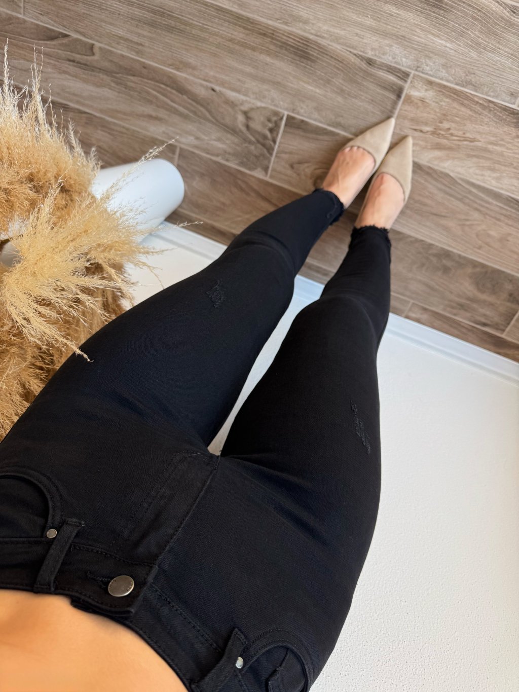 Tieto čierne skinny rifle sú ideálnym kúskom pre ženy, ktoré chcú opticky predĺžiť nohy a zdôrazniť siluetu. Elastický denim zaručí pohodlie počas celého dňa, zatiaľ čo surový lem a jemné ošúchané detaily dodávajú modelu moderný nádych. Skvele sa hodia k elegantným lodičkám, ležérnym teniskám aj k členkovým čižmám.