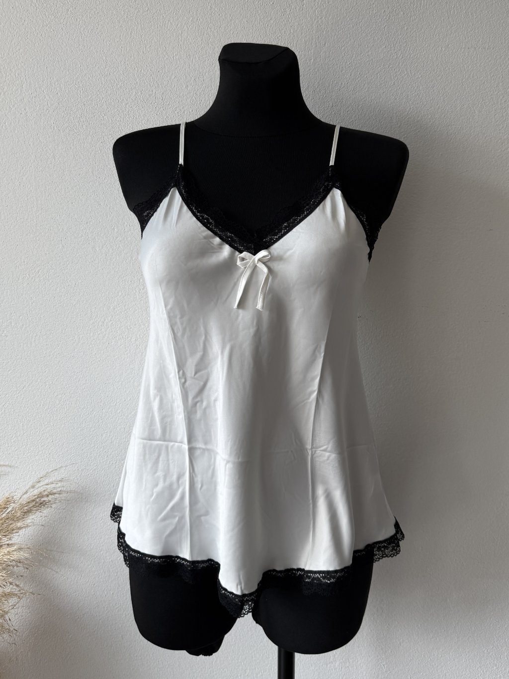 veľkosť XL - tielko - dĺžka bez ramienok 54 cm, šírka pod pazuchou 2x44 cm, kraťasky - dĺžka 31 cm, pás 2x32,5 cm, natiahne sa na 2x60 cm