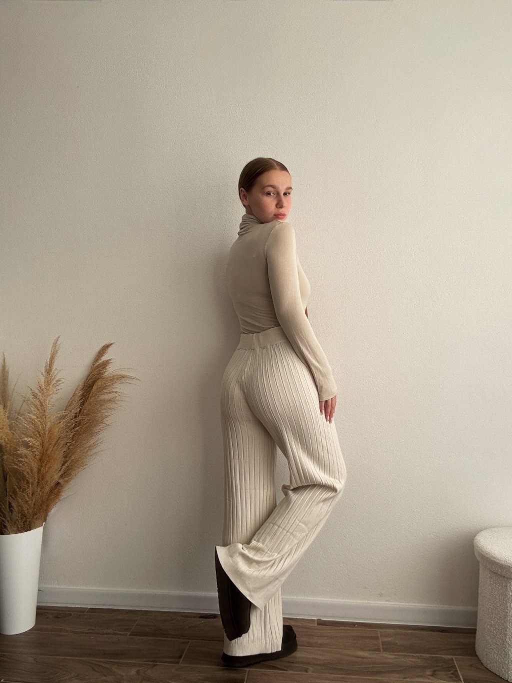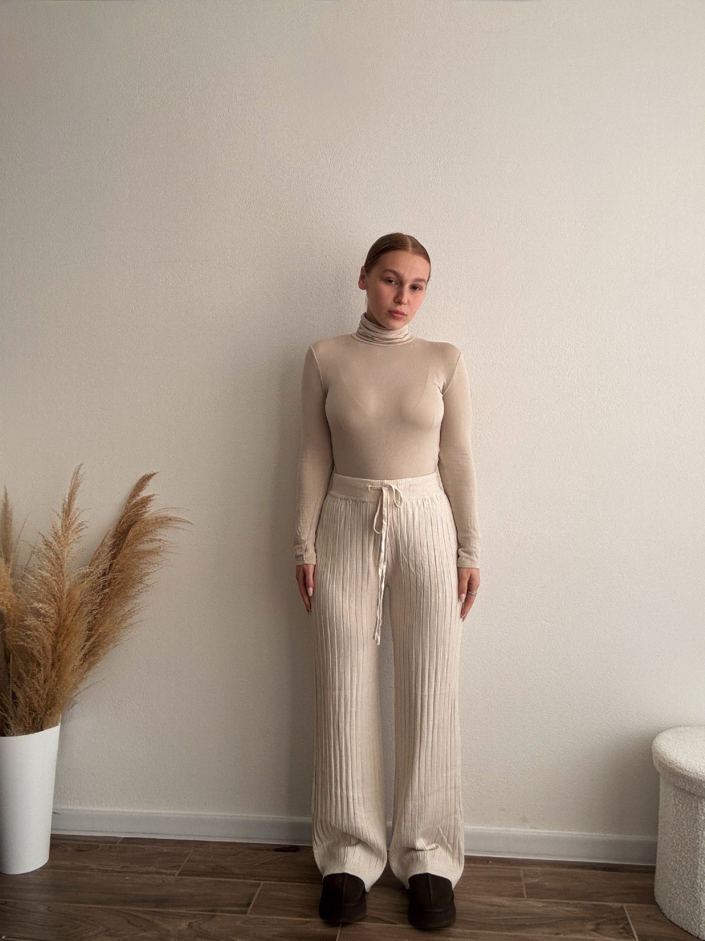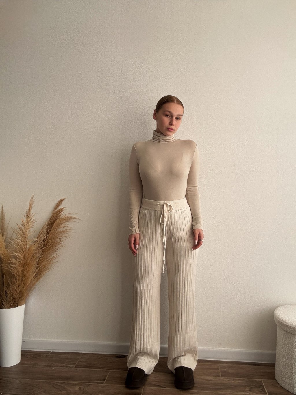 Jemné upletové nohavice LEEN - KRÉMOVÁ