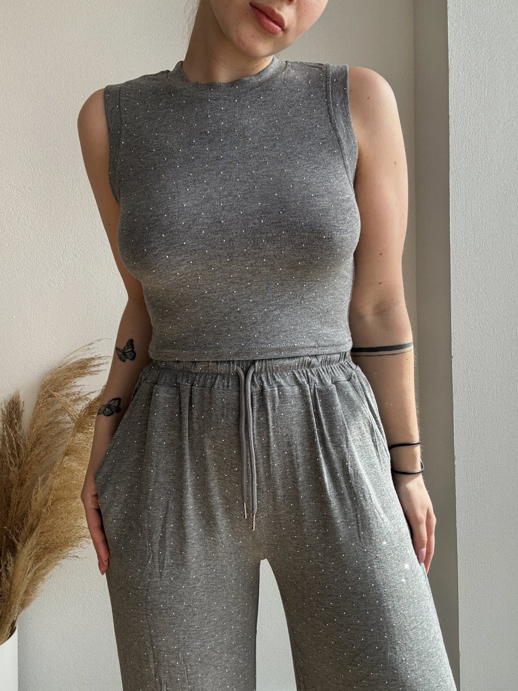 KAMIENKOVÝ KOMPLET S TIELKOM - GLITTER - ŠEDÝ