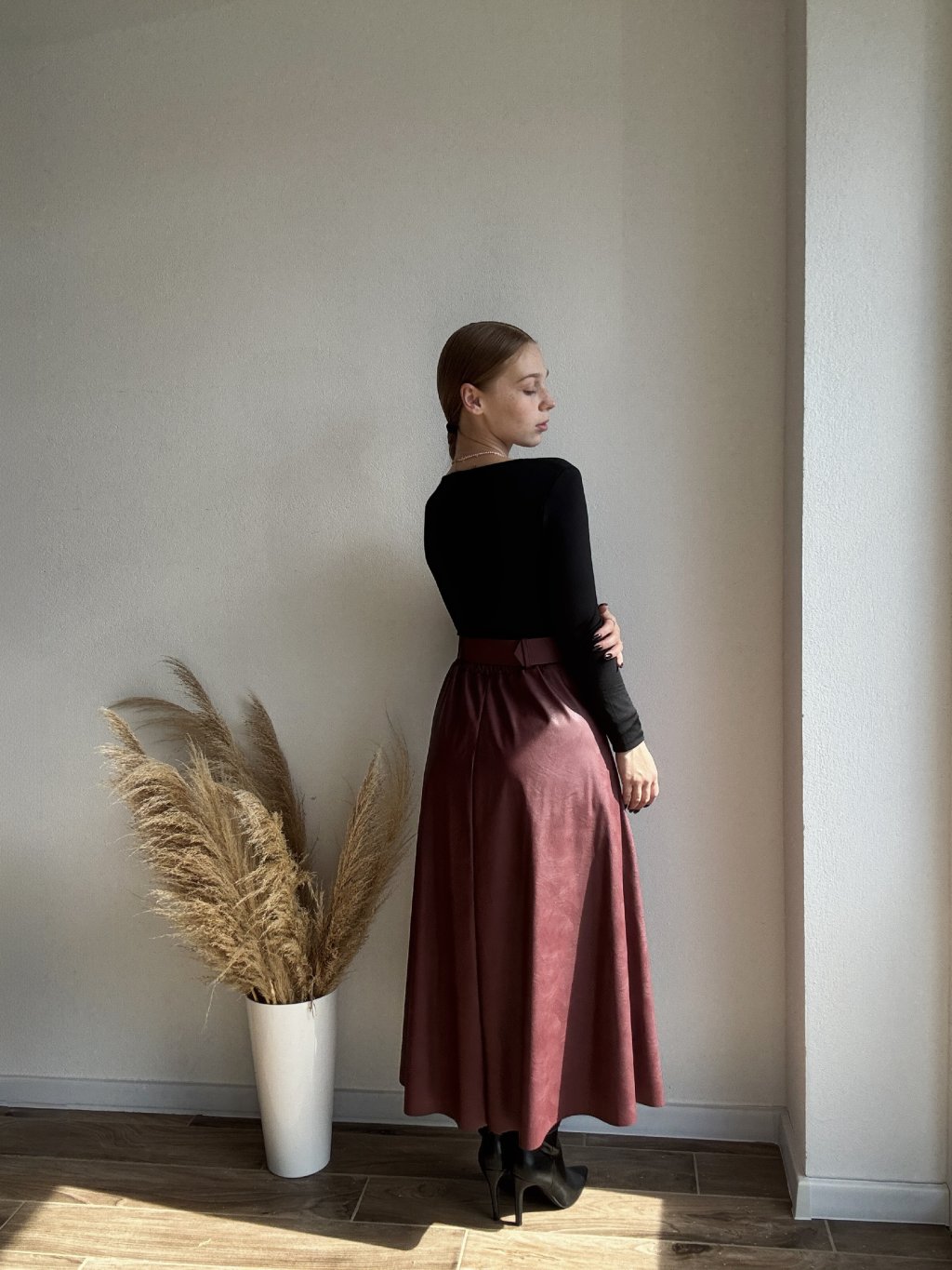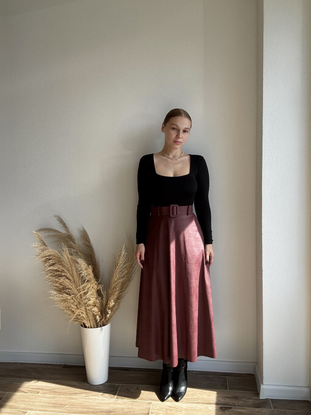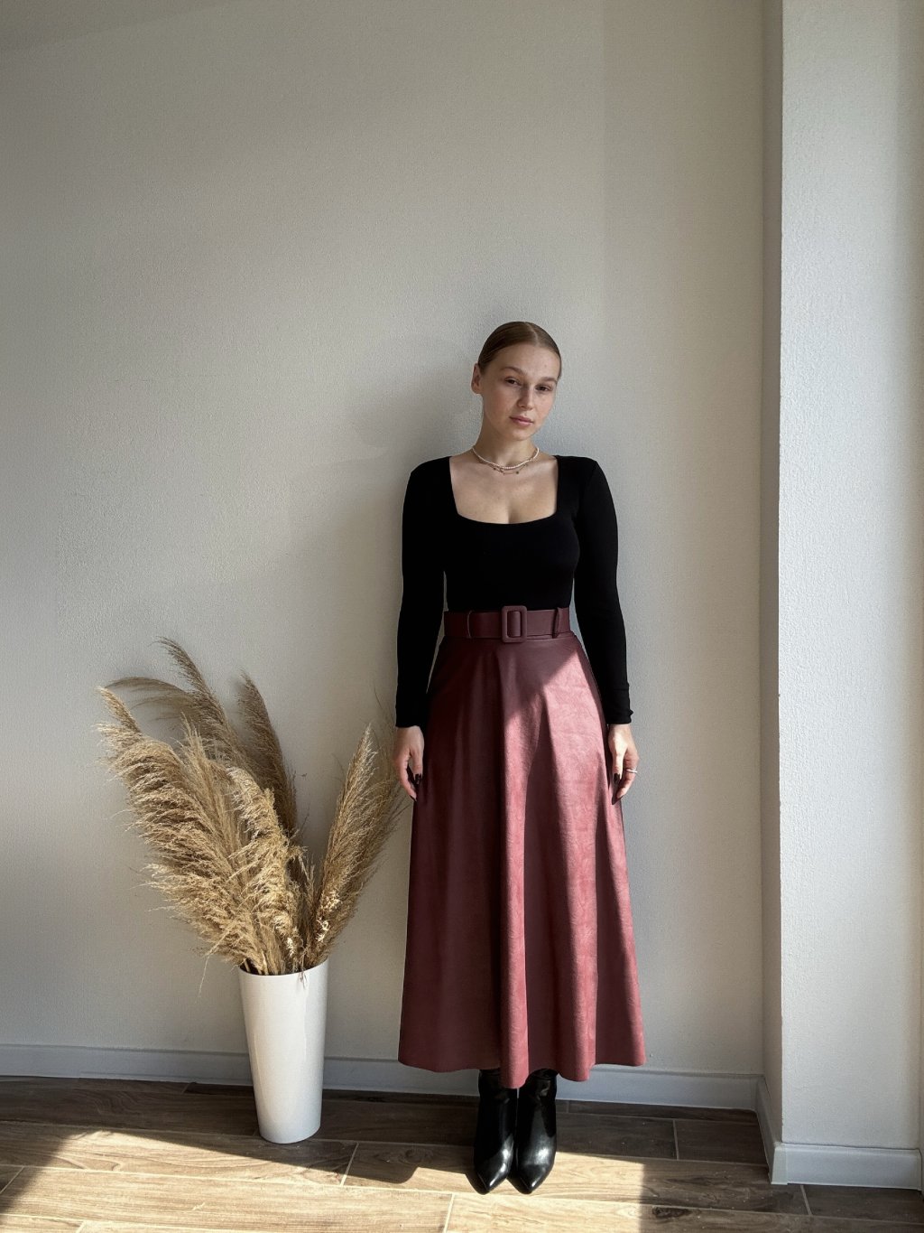 KOŽENKOVÁ SUKŇA GREYS - BORDOVÁ