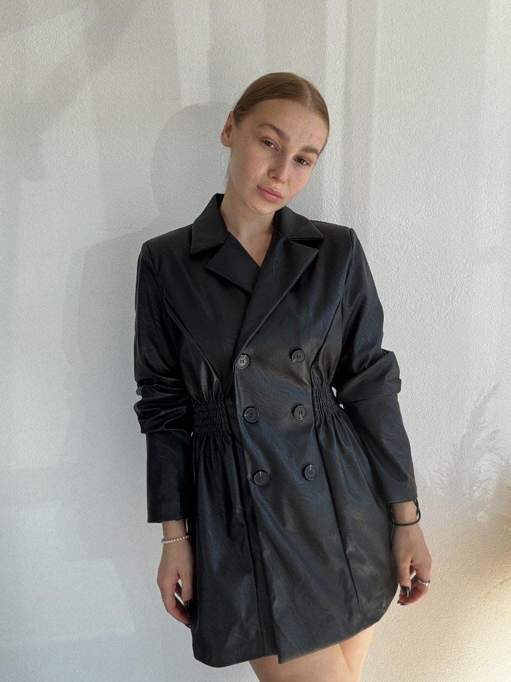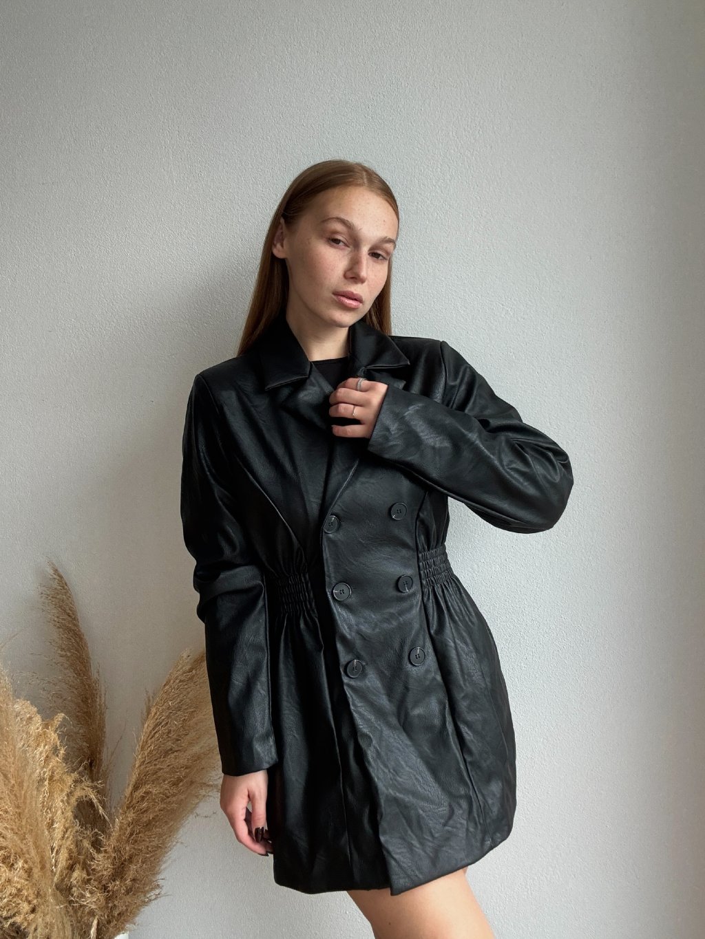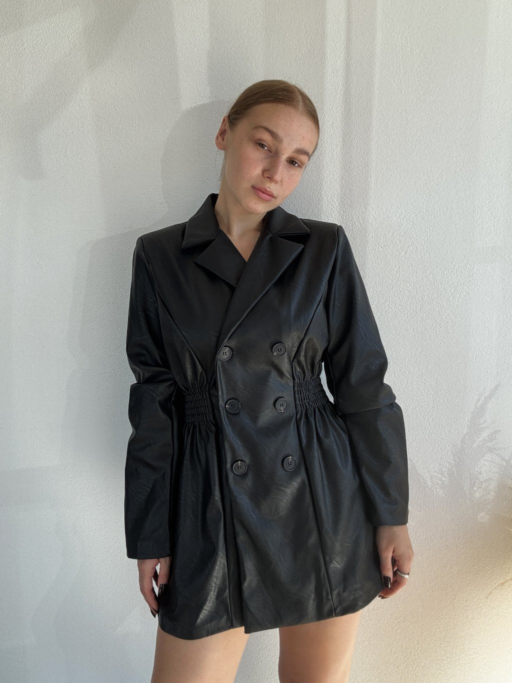 KOŽENKOVÝ KABÁT/SAKO - ČIERNA