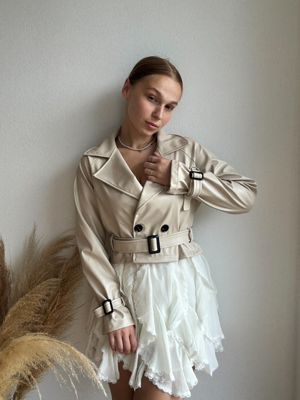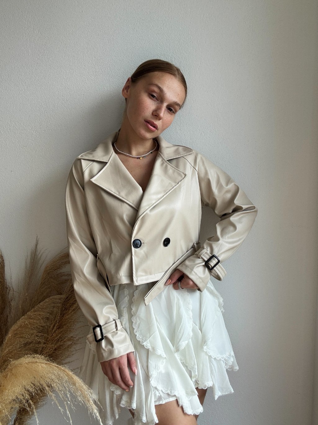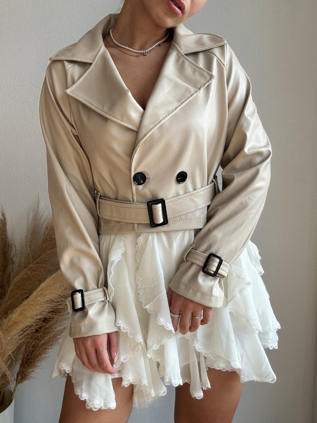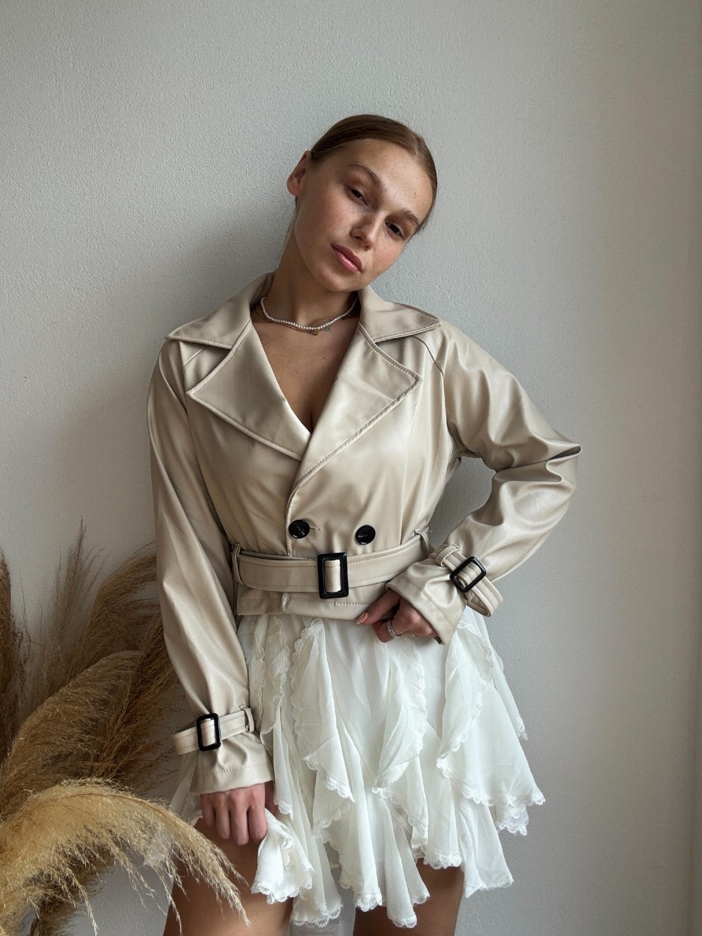KOŽENKOVÝ TRENČKOT - VOUG - KREMOVÁ