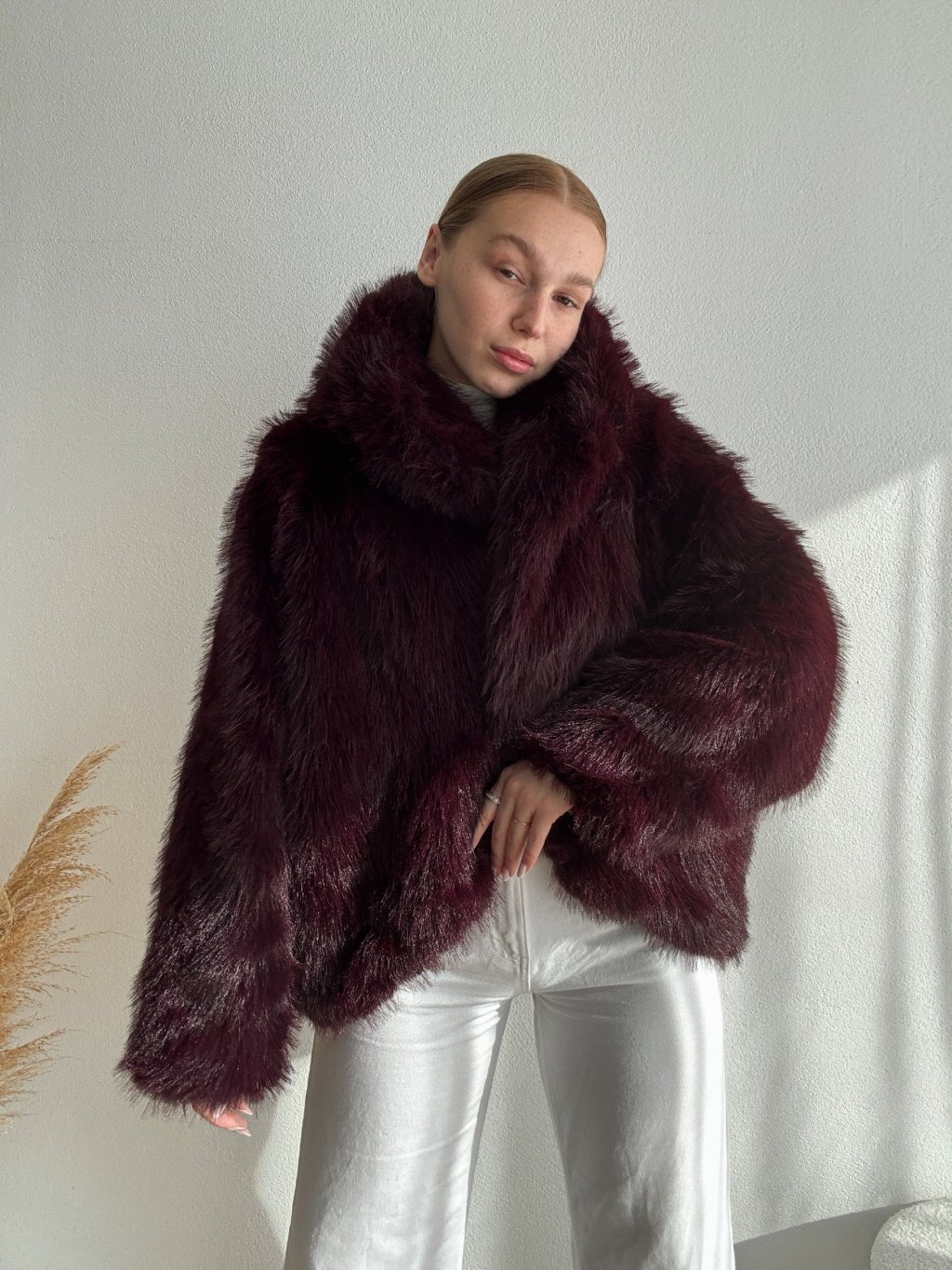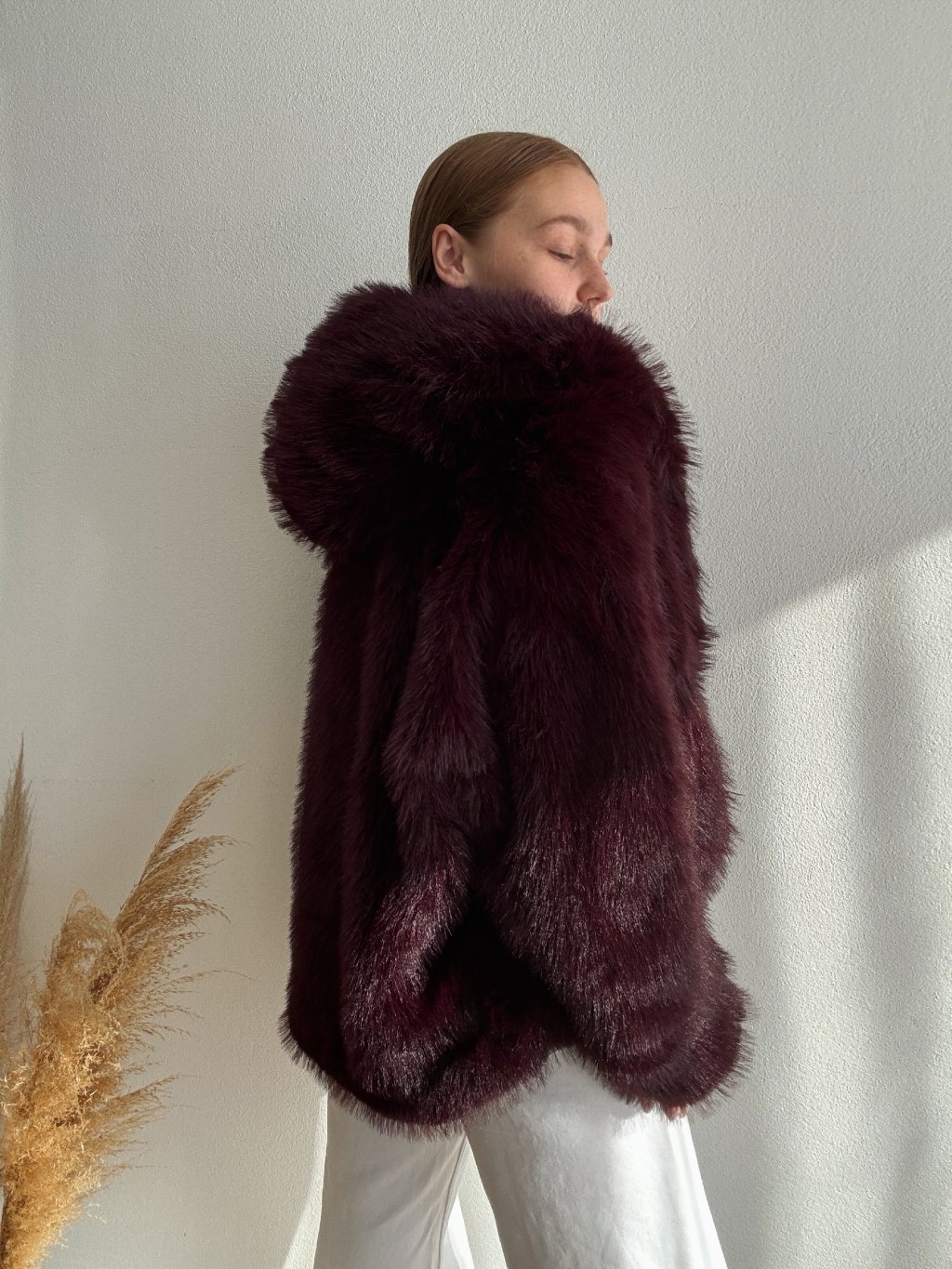 KOŽUCH S KAPUCŇOU NINA - BURGUNDY