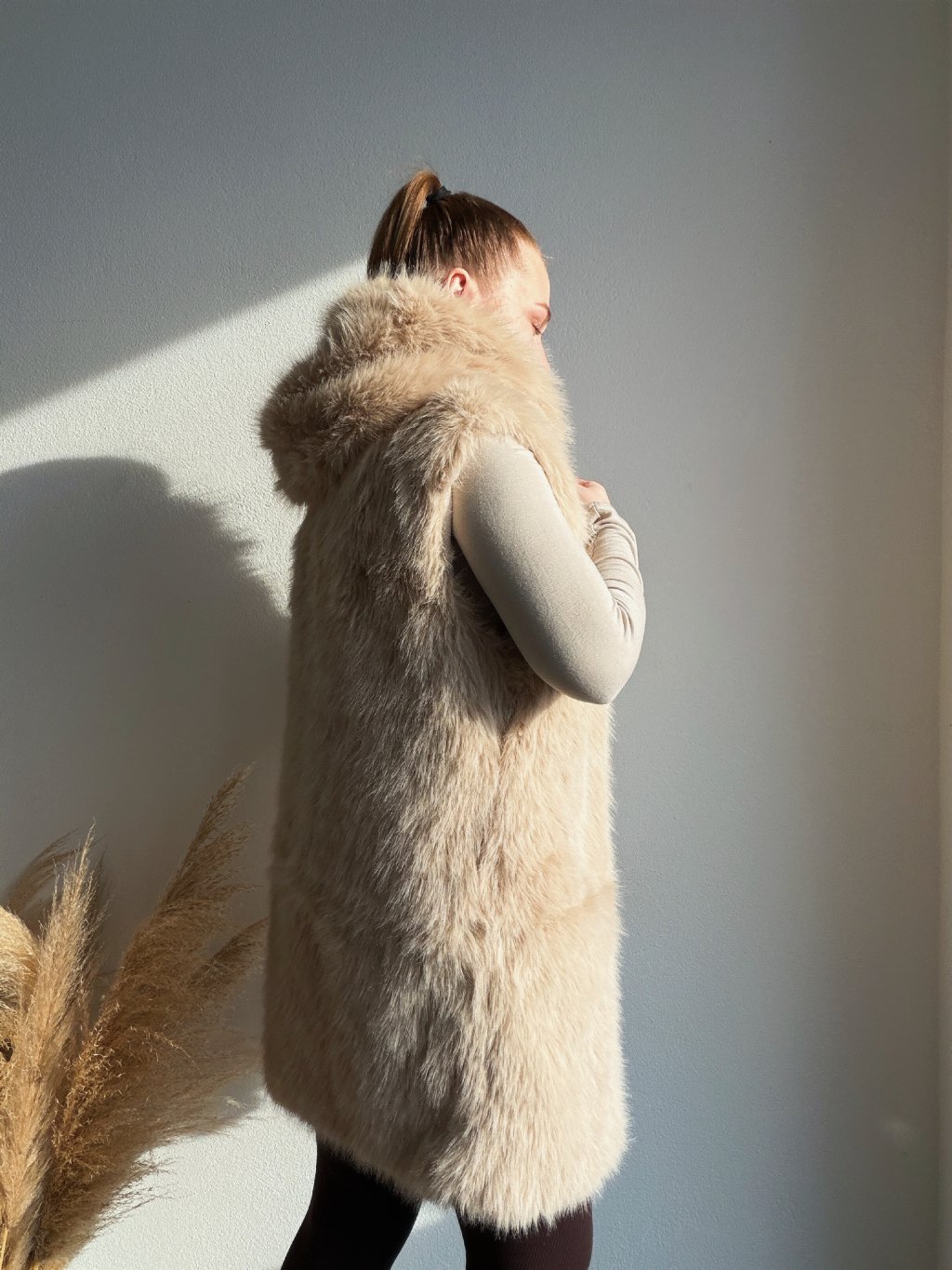KOŽUŠINOVÁ VESTA LENO - BÉŽOVÁ