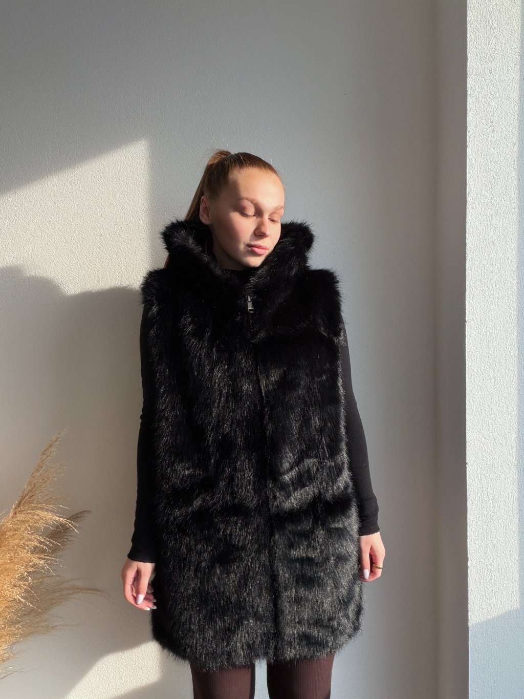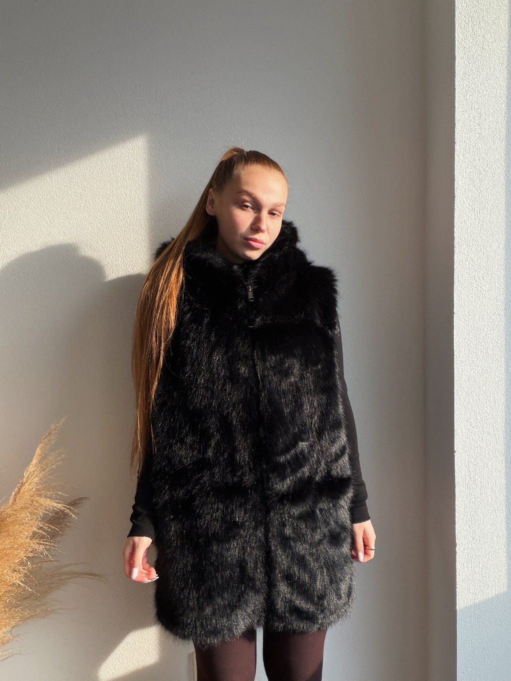 KOŽUŠINOVÁ VESTA LENO - ČIERNA