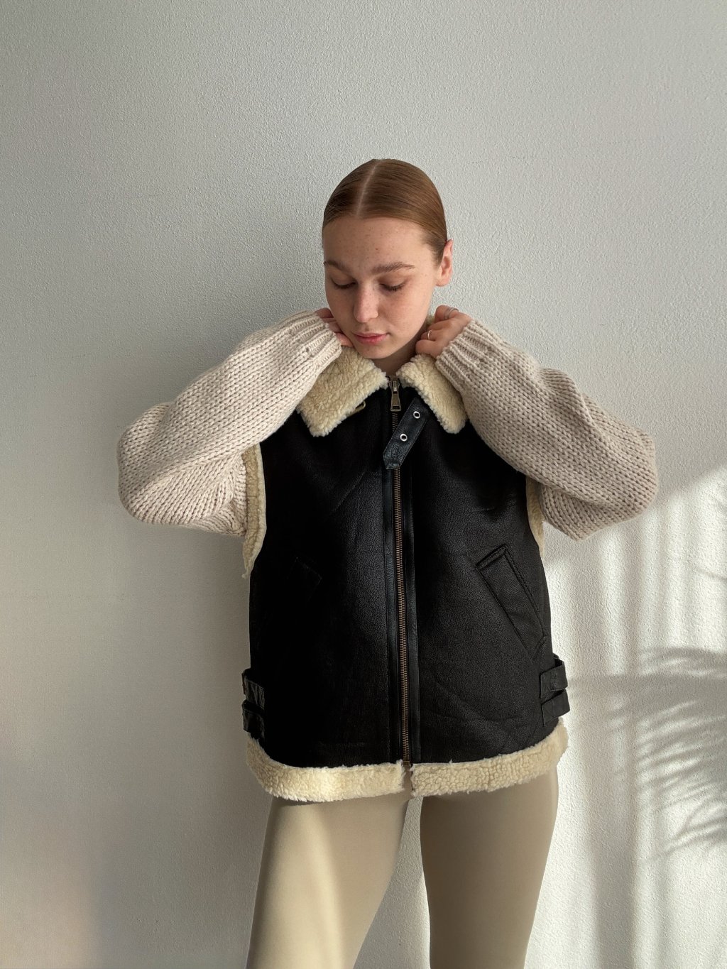 KOŽUŠINOVÁ VESTA NANY - BIELOČIERNA
