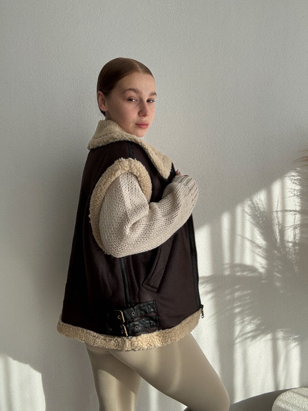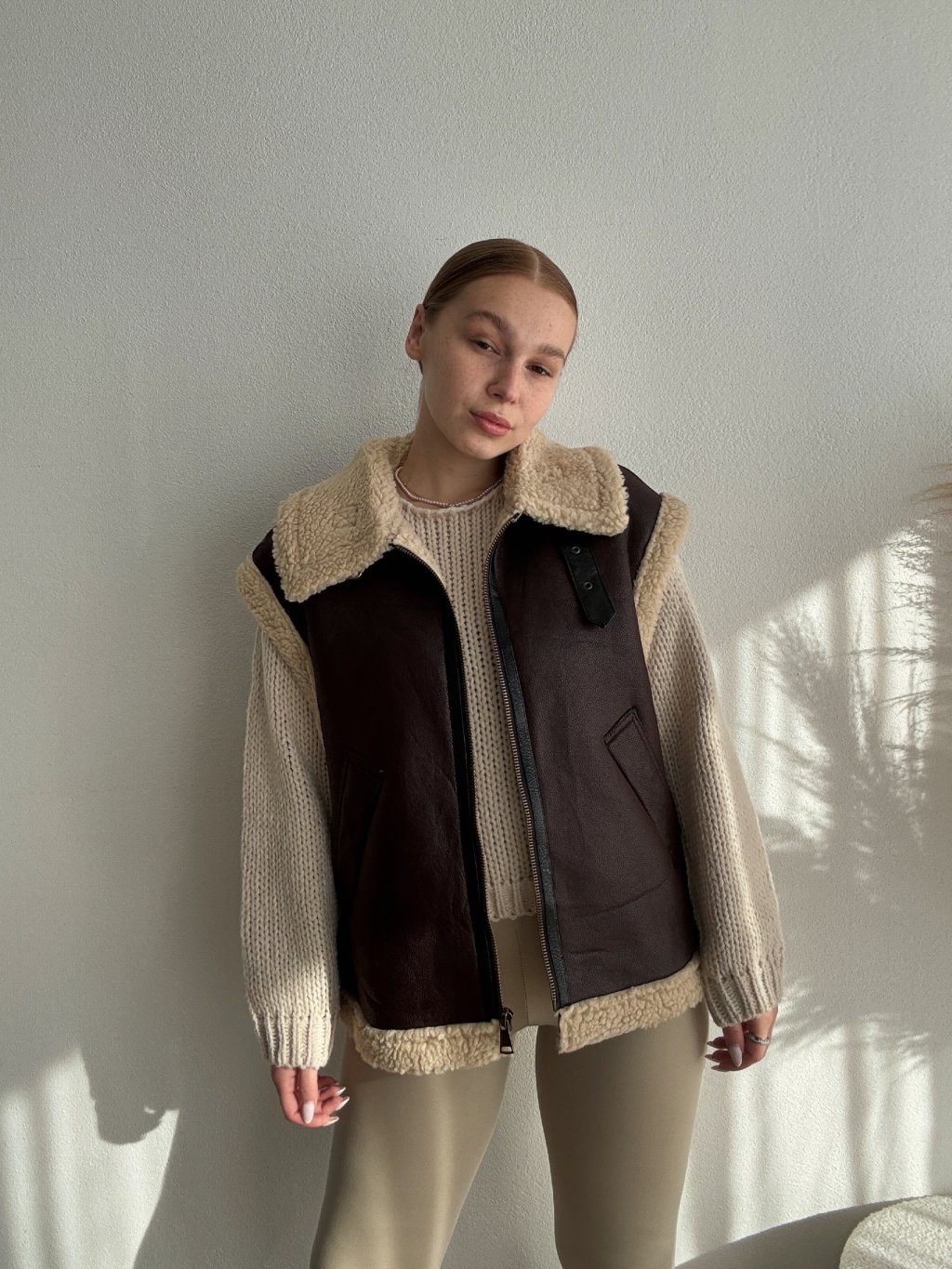 KOŽUŠINOVÁ VESTA NANY - HNEDÁ