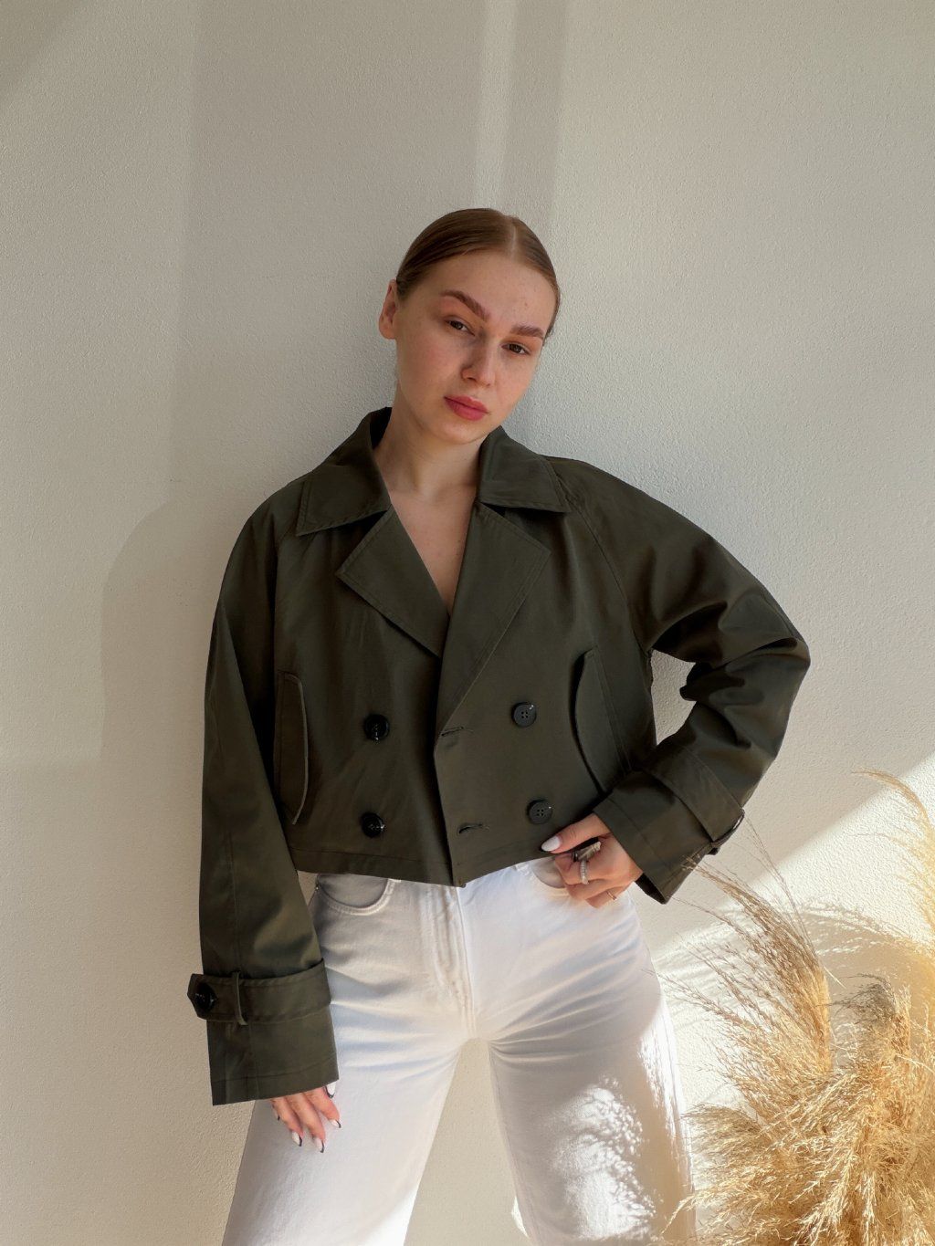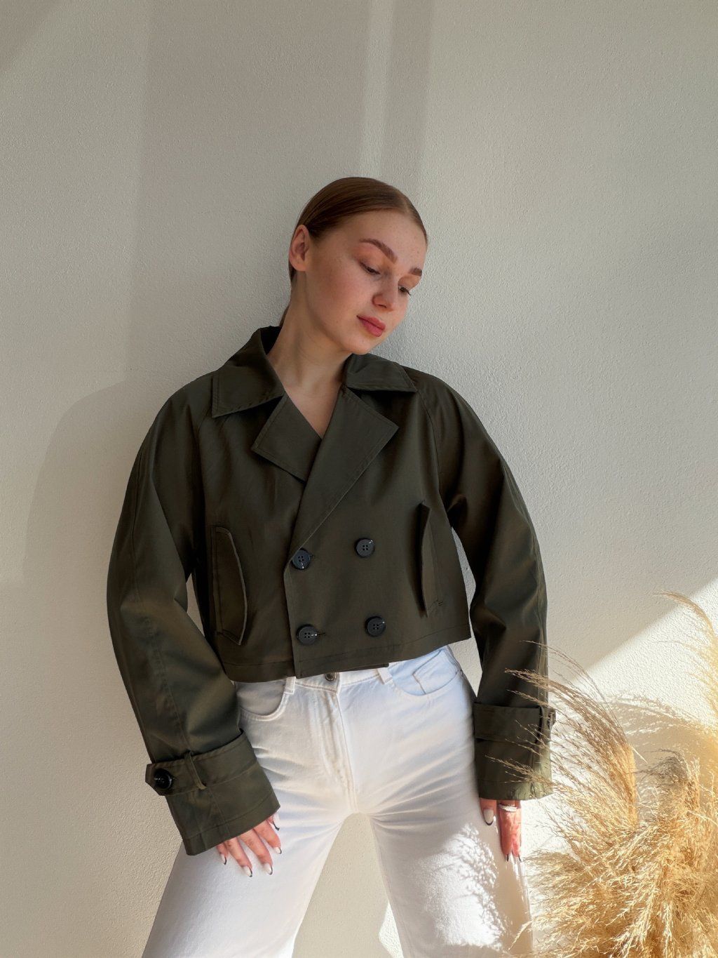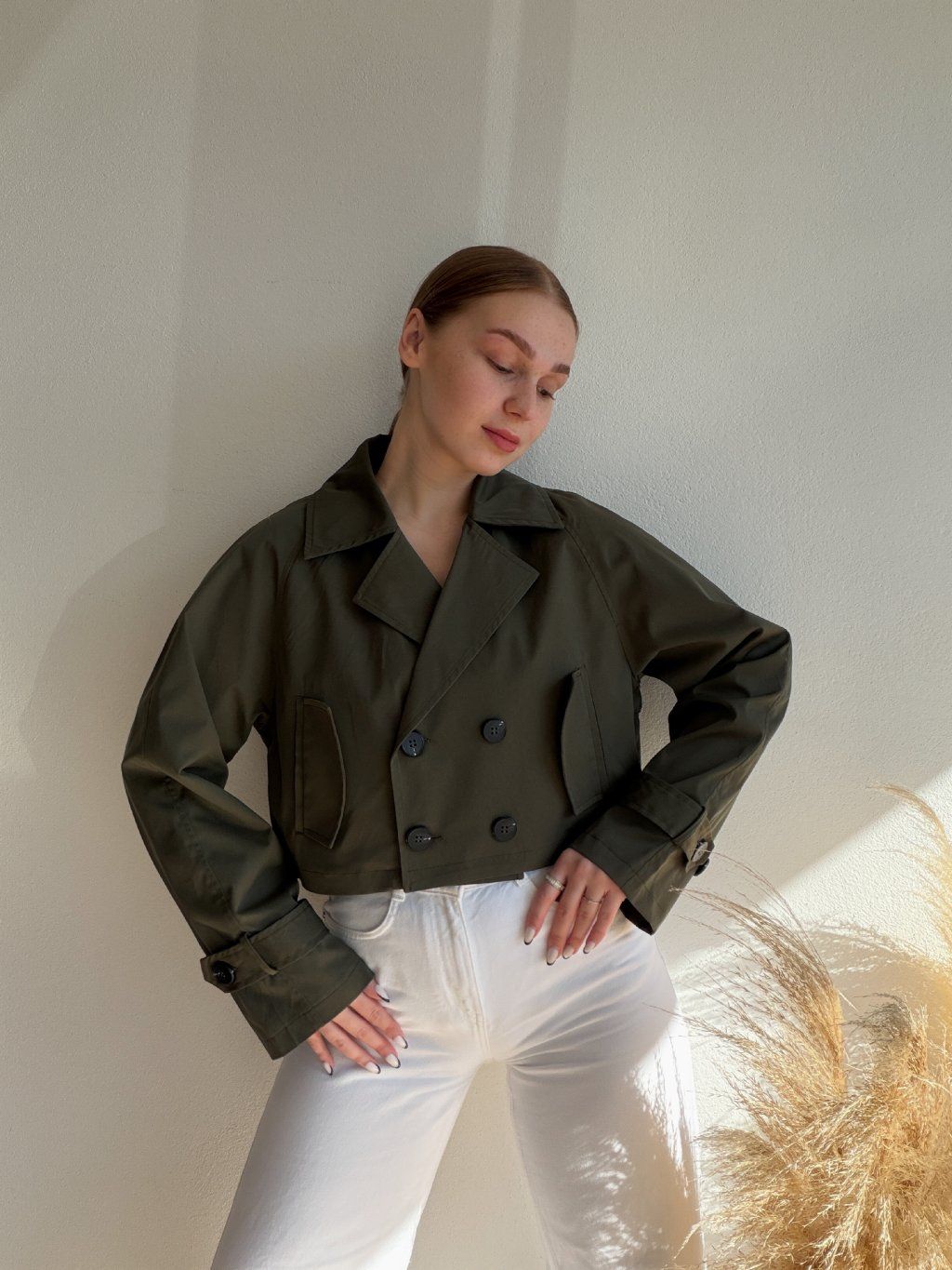 KRÁTKY TRENČKOT VENY - KHAKI
