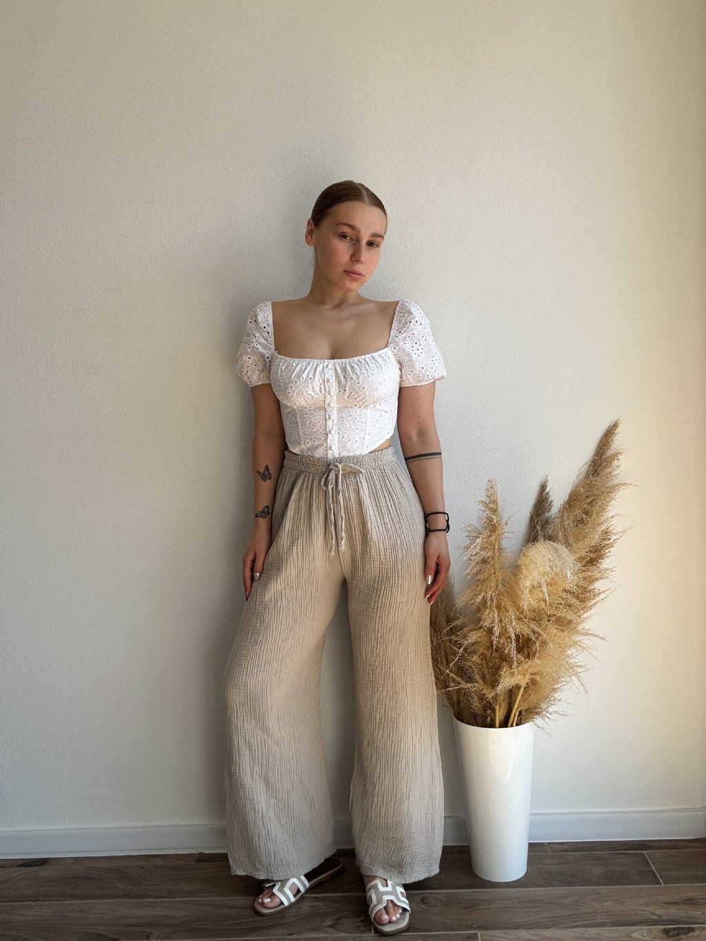MUŠELINOVÉ NOHAVICE KERIN - BÉŽOVÁ