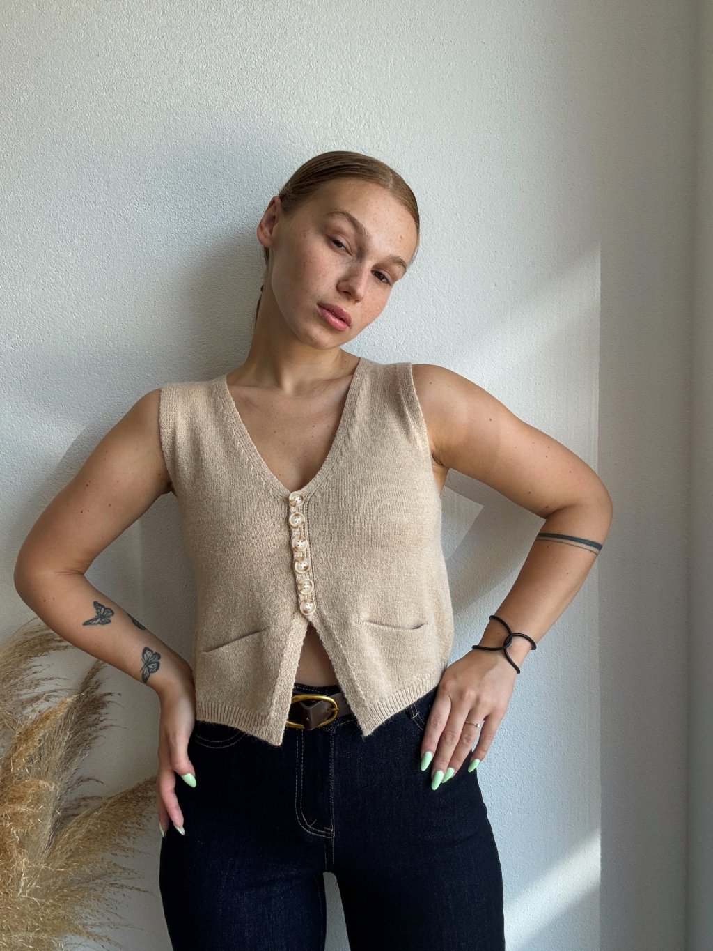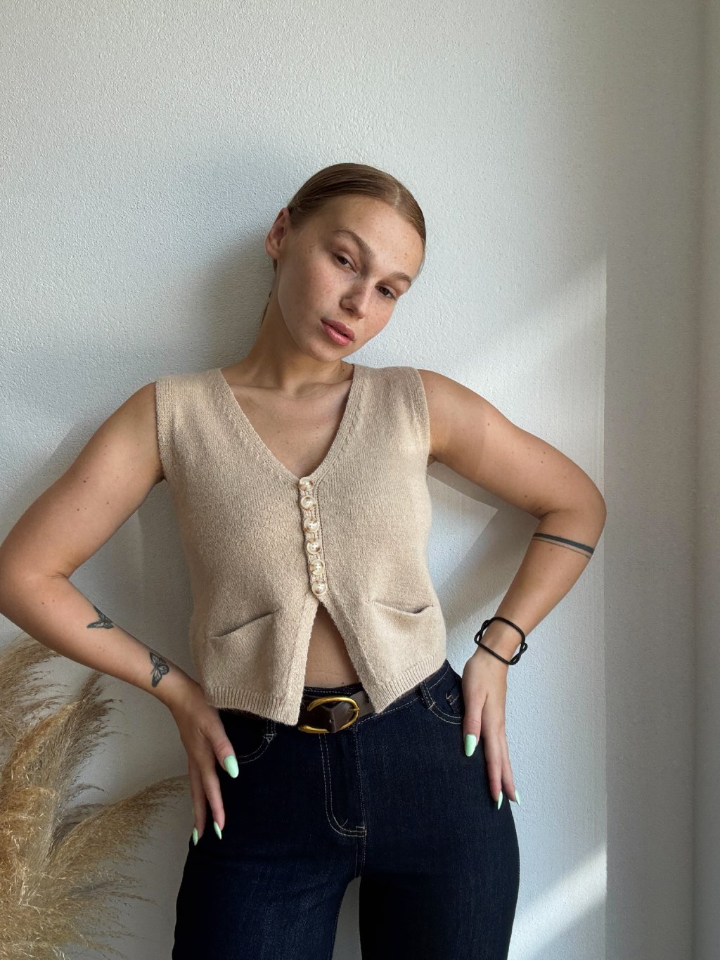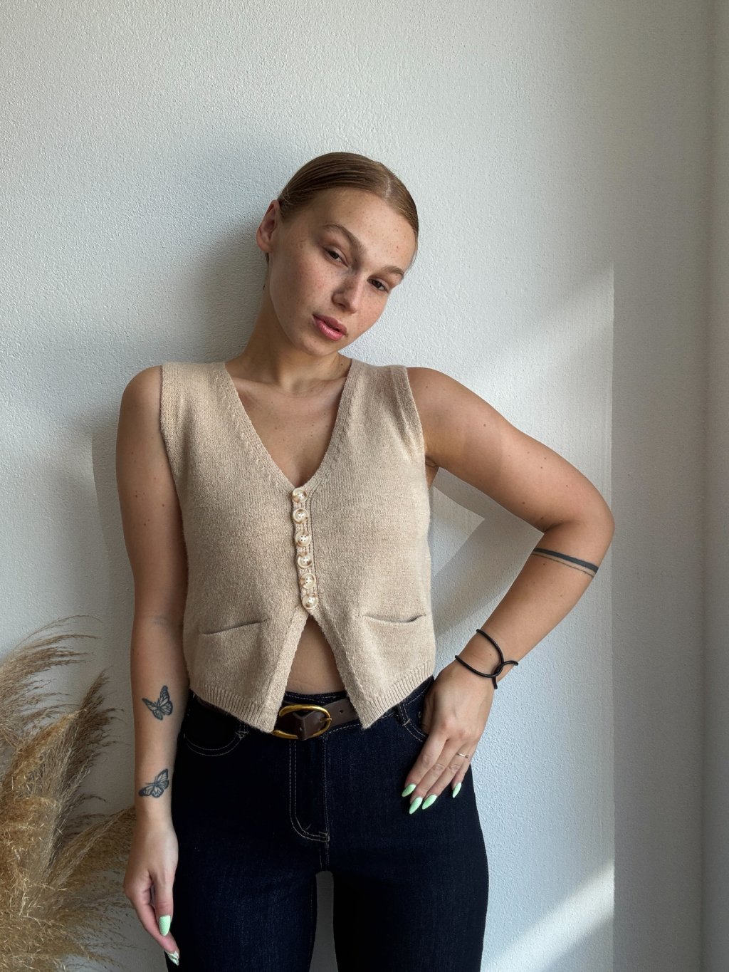 PLETENÁ VESTA GOLEM - BÉŽOVÁ