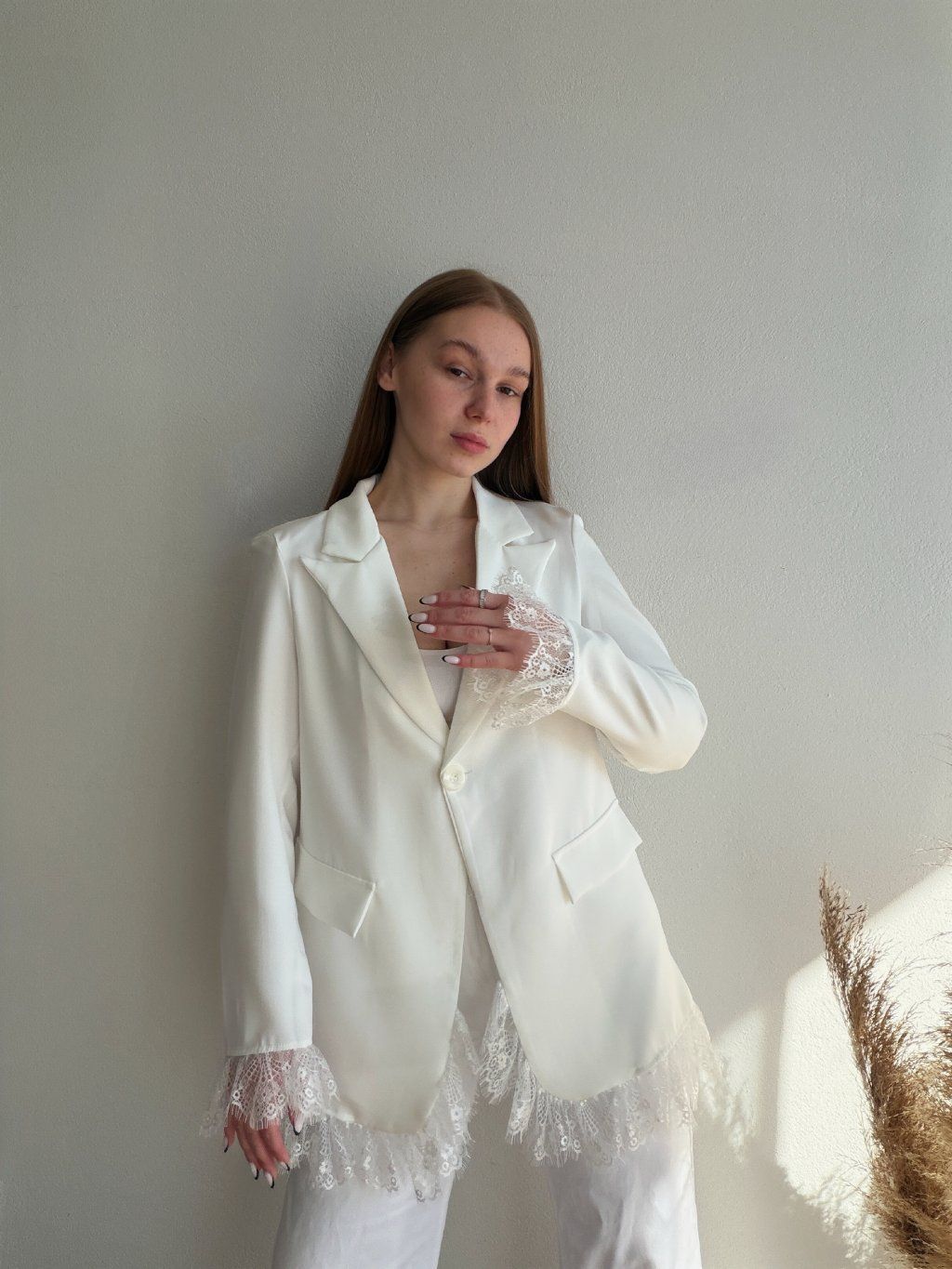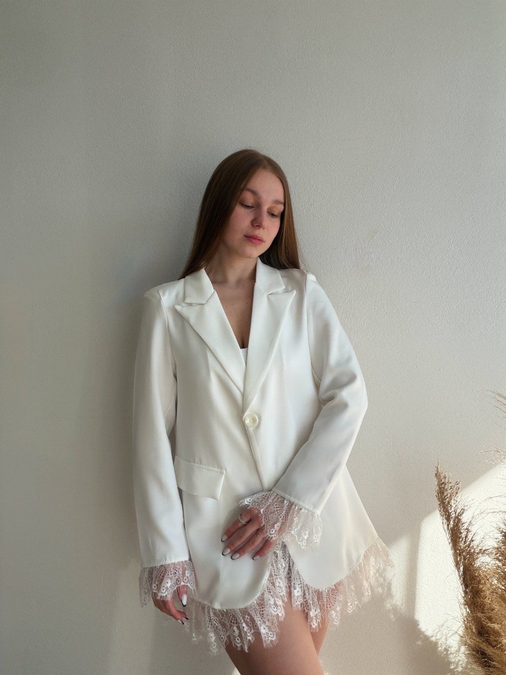 PREDĹŽENÉ SAKO S ČIPKOU AREN - BIELA
