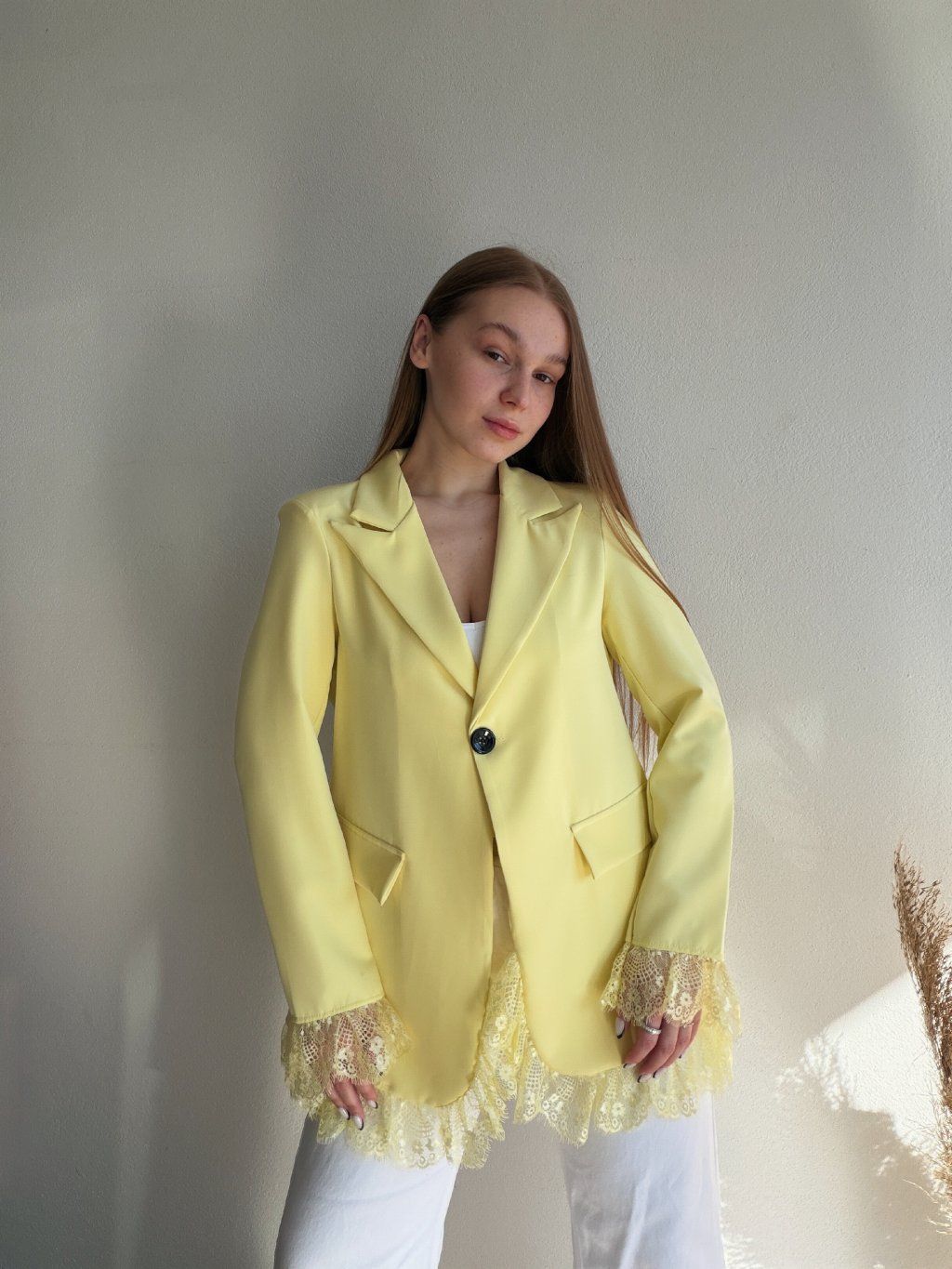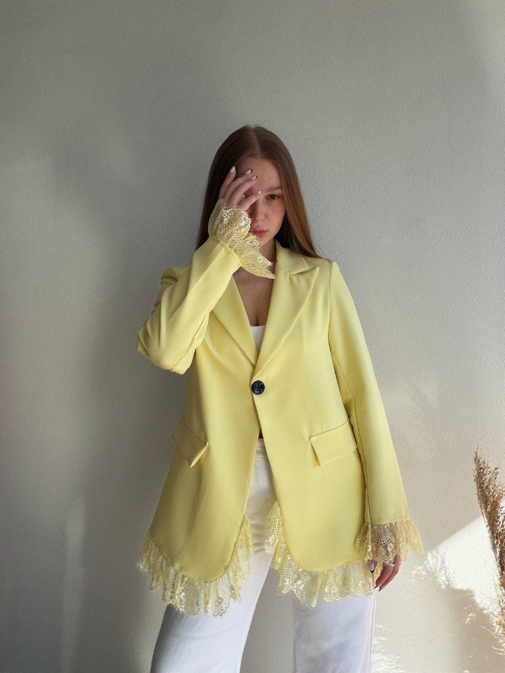 PREDĹŽENÉ SAKO S ČIPKOU AREN - ŽLTÁ