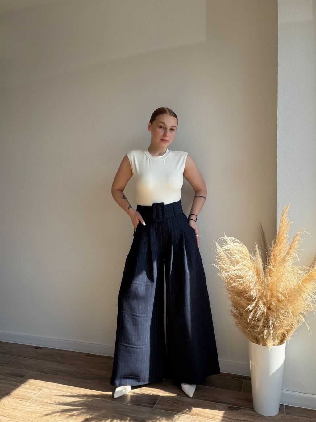 PRUŽKOVANÉ NOHAVICE LUMI s maxi opaskom - MODRÁ