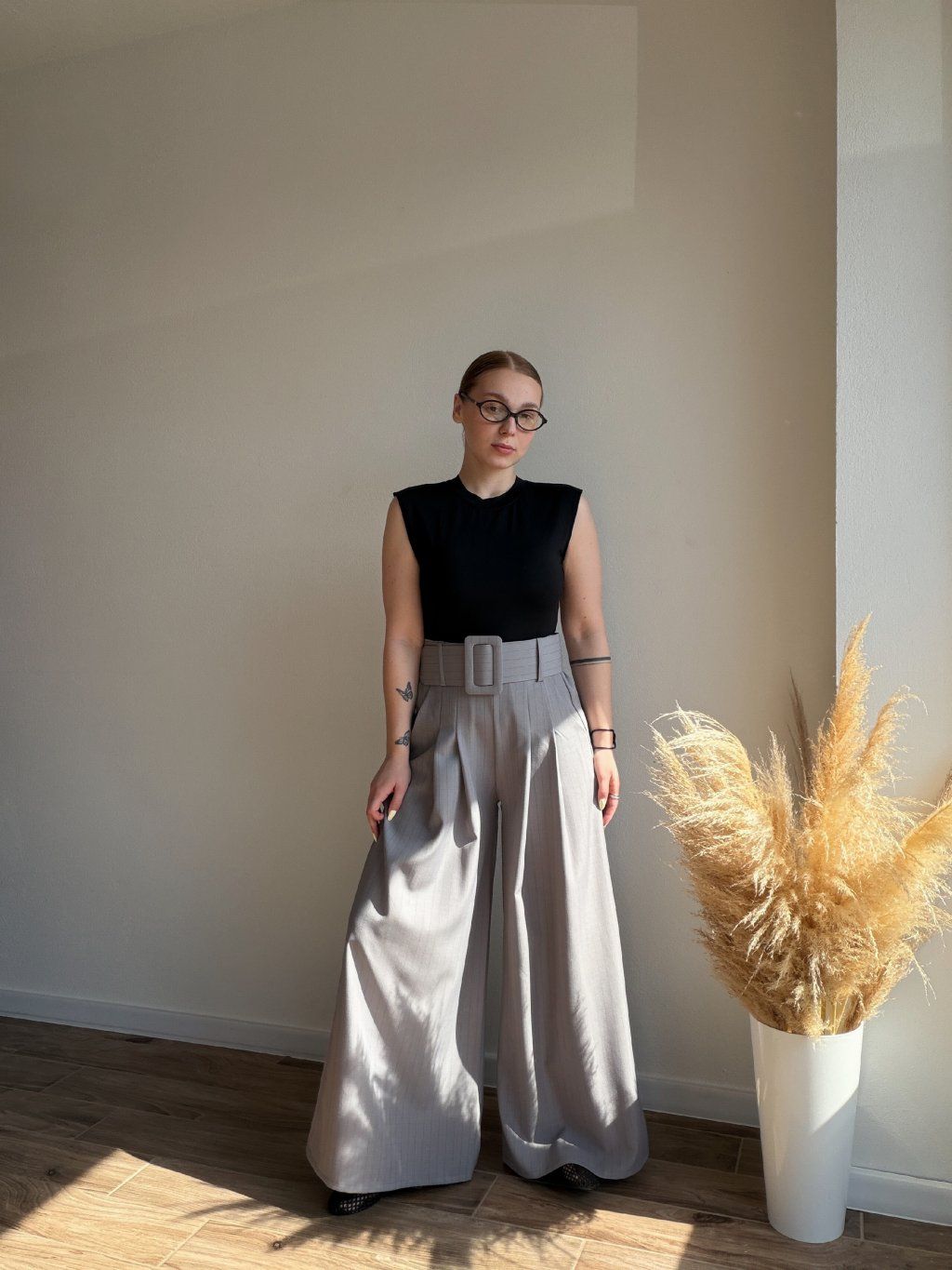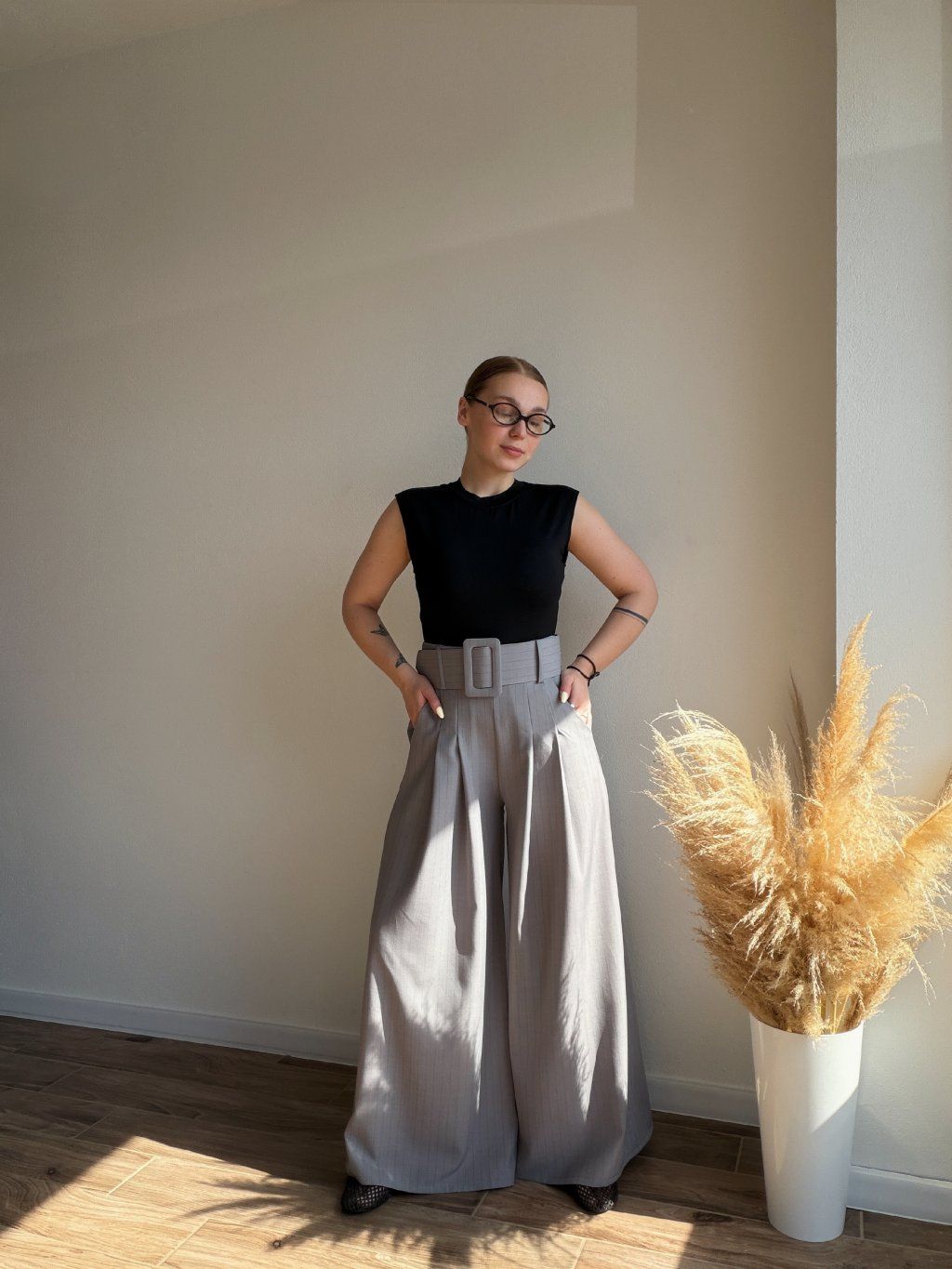 PRUŽKOVANÉ NOHAVICE LUMI s maxi opaskom - SIVÁ