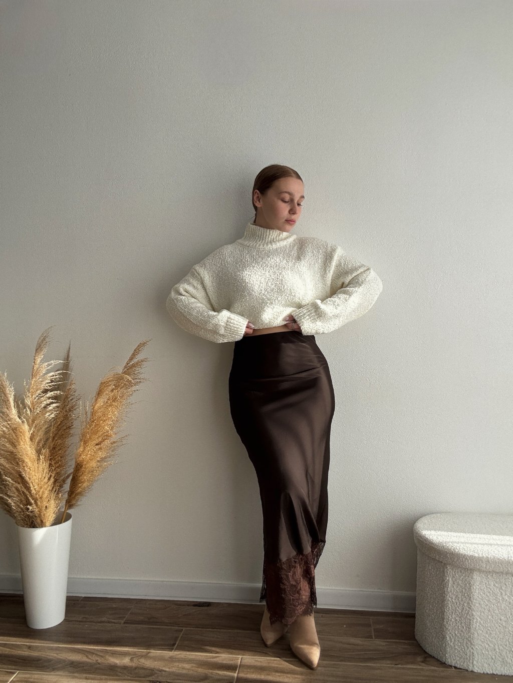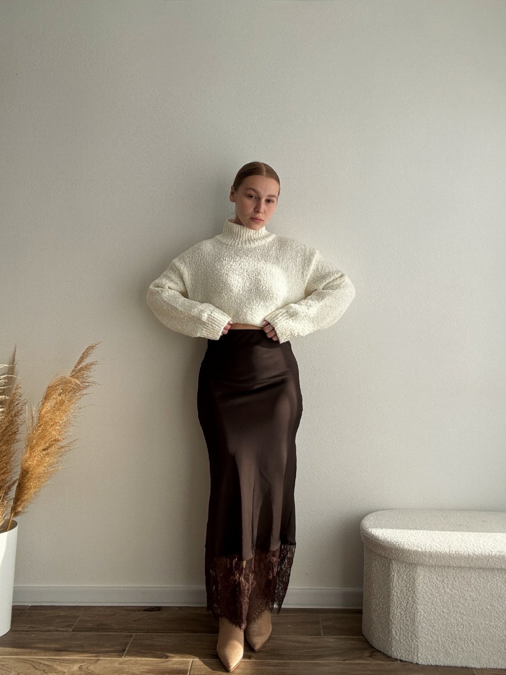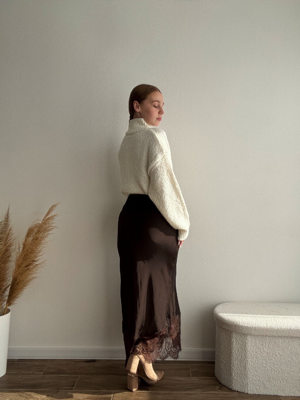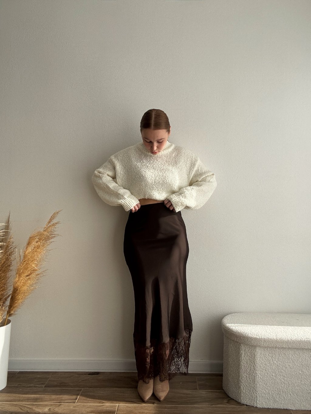 Saténová sukňa s čipkou - SARAH - ČOKOLÁDOVÁ