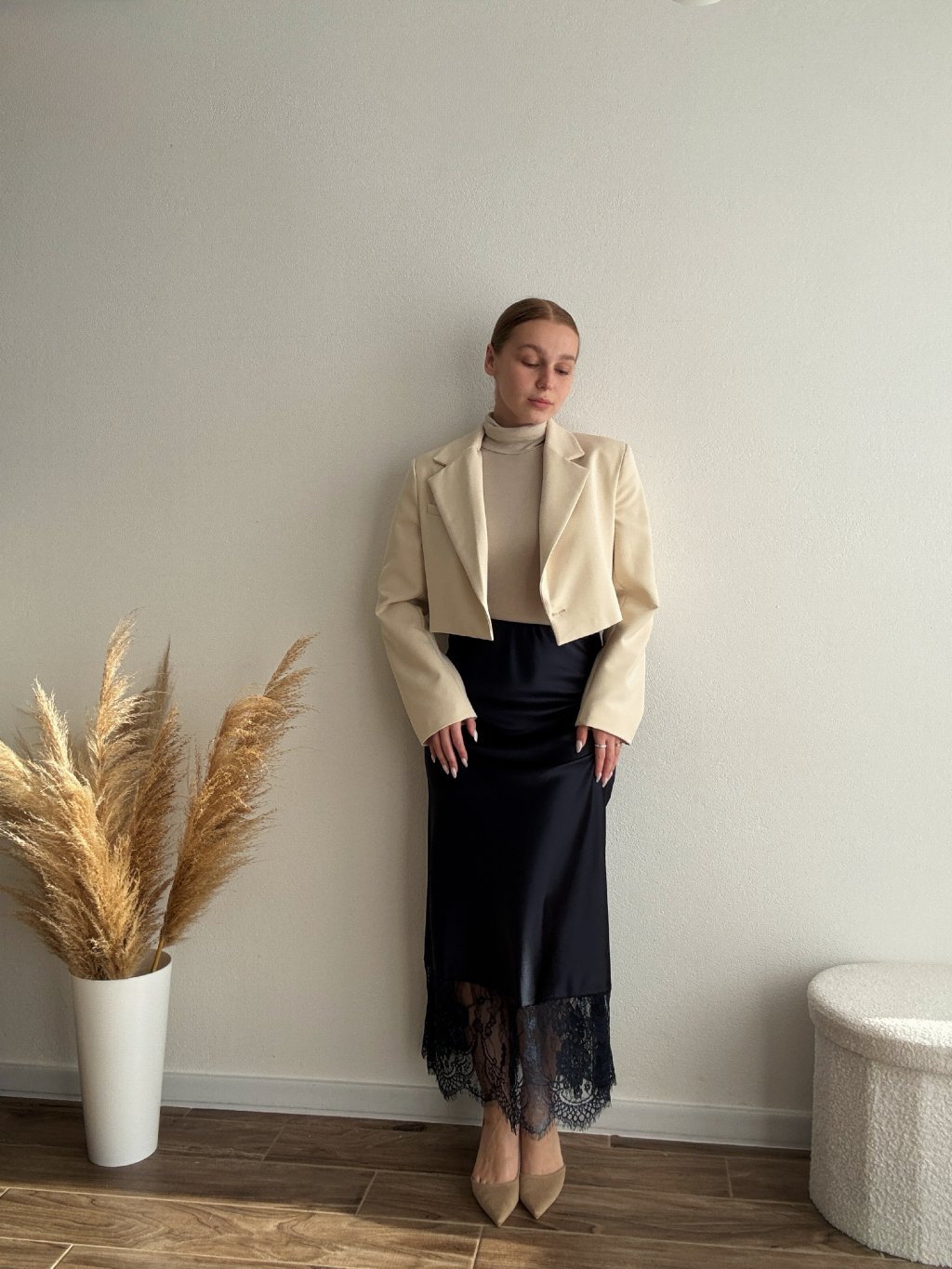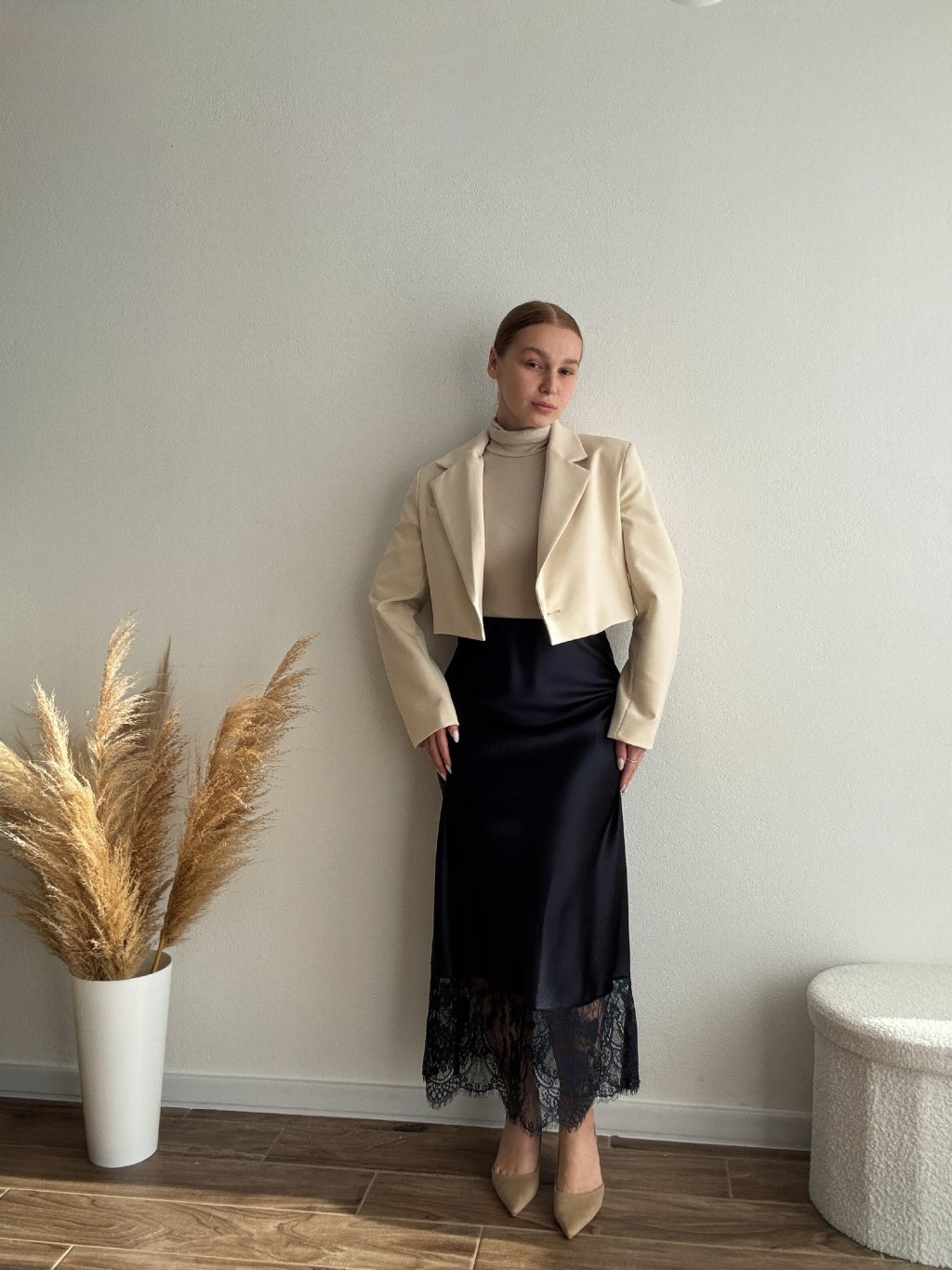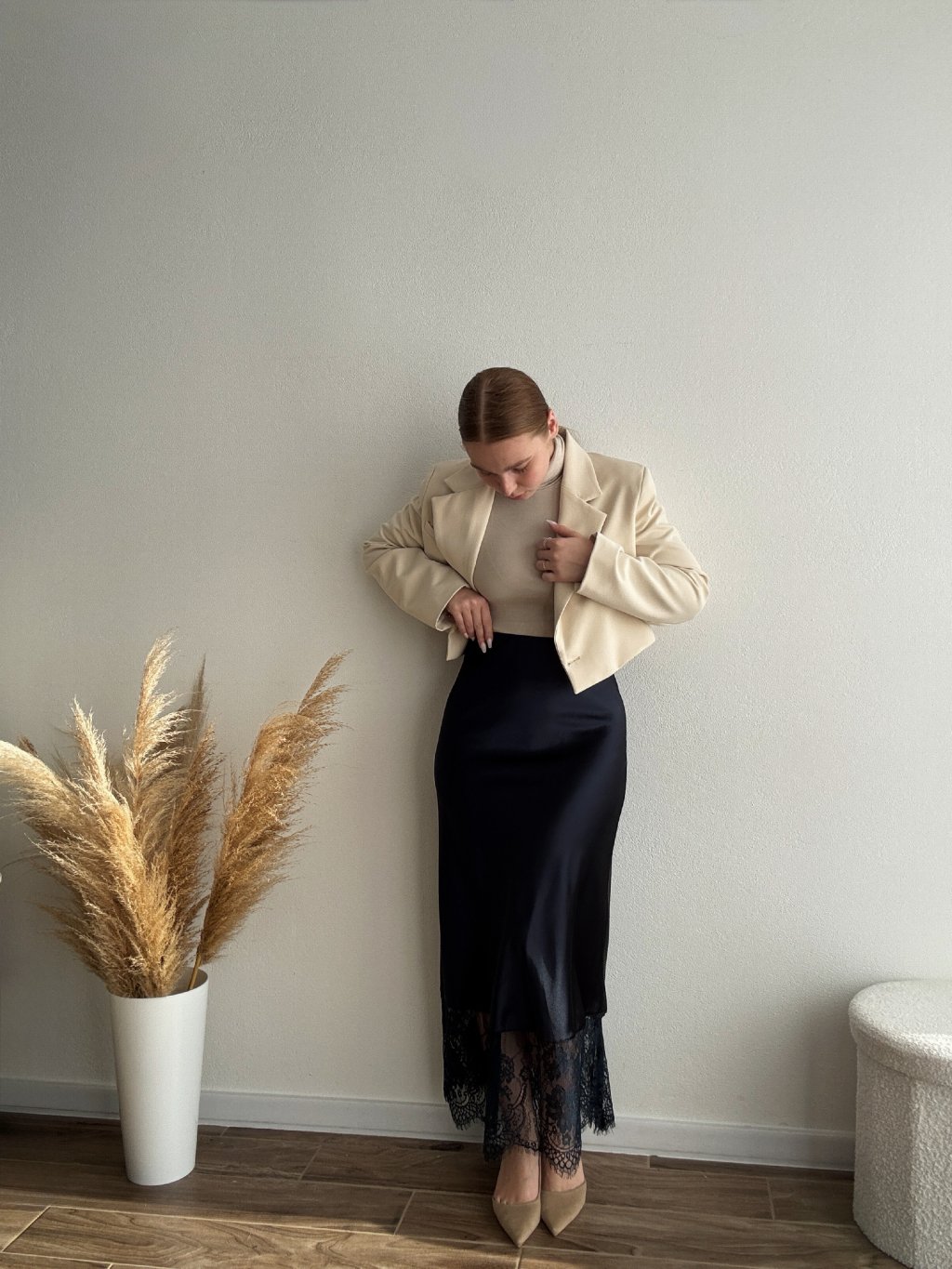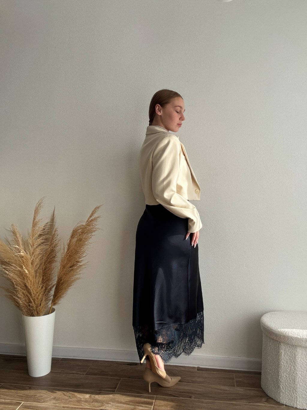 Saténová sukňa s čipkou - SARAH - MODRÁ