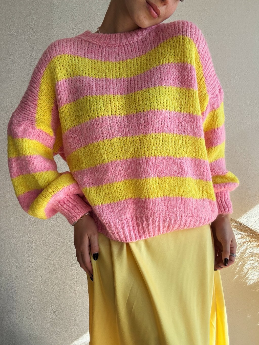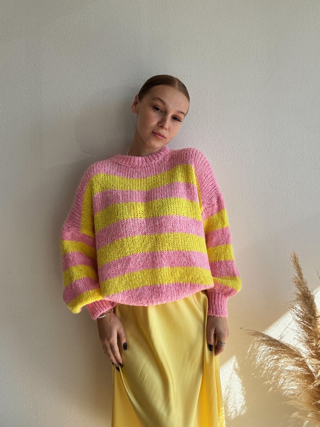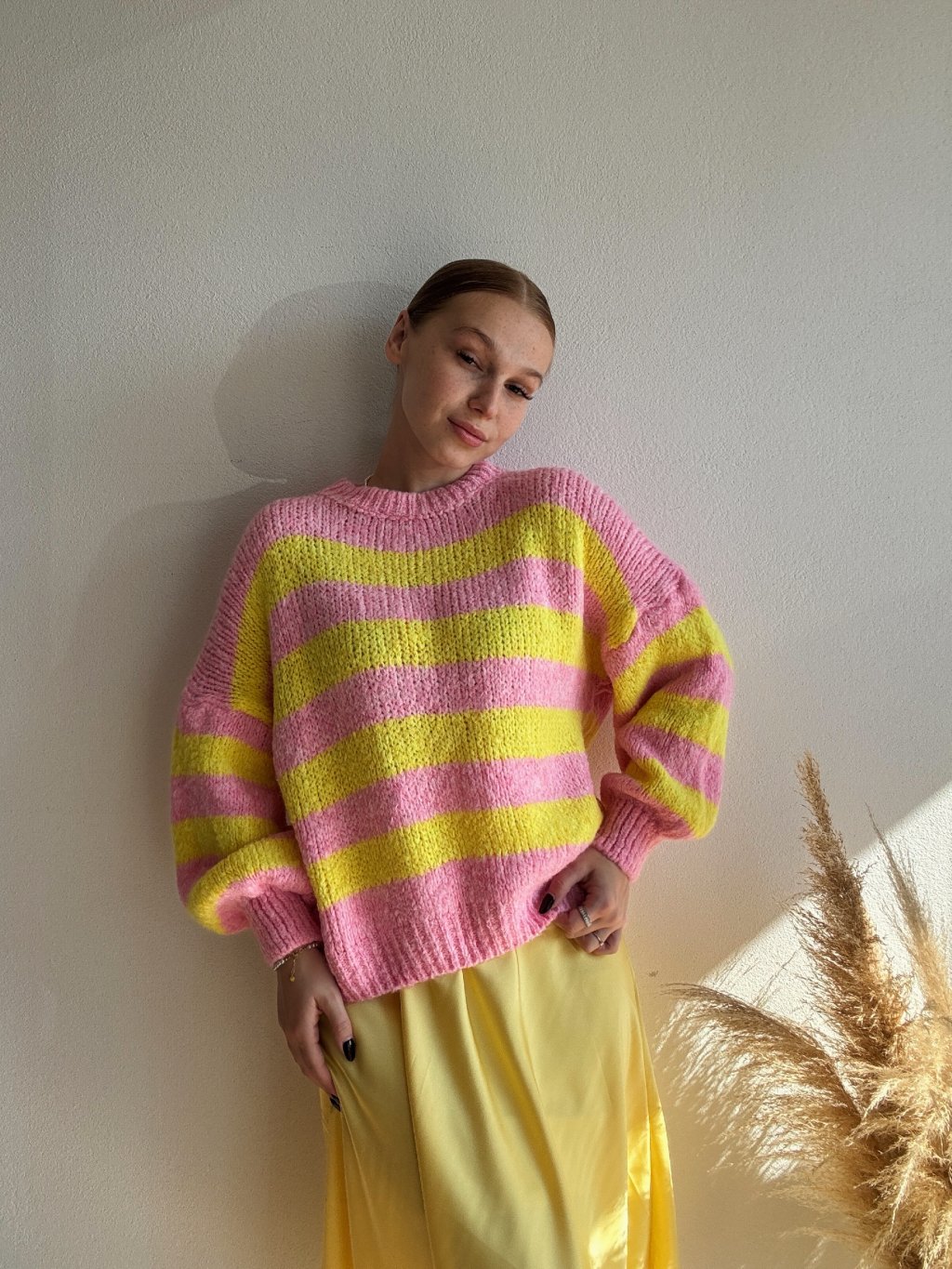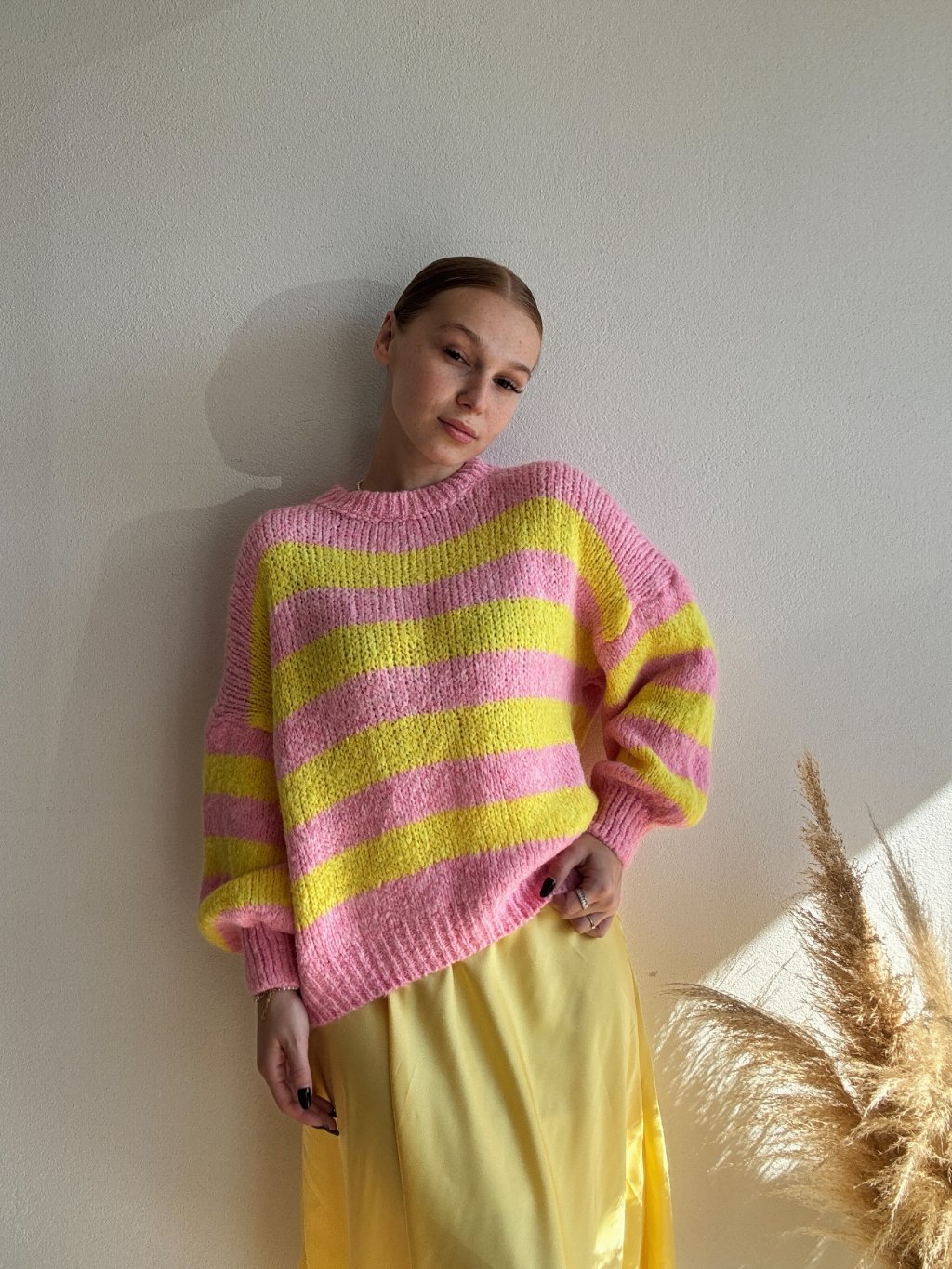 Sveter s pruhovaným vzorom - AURORA - RUŽOVÁ