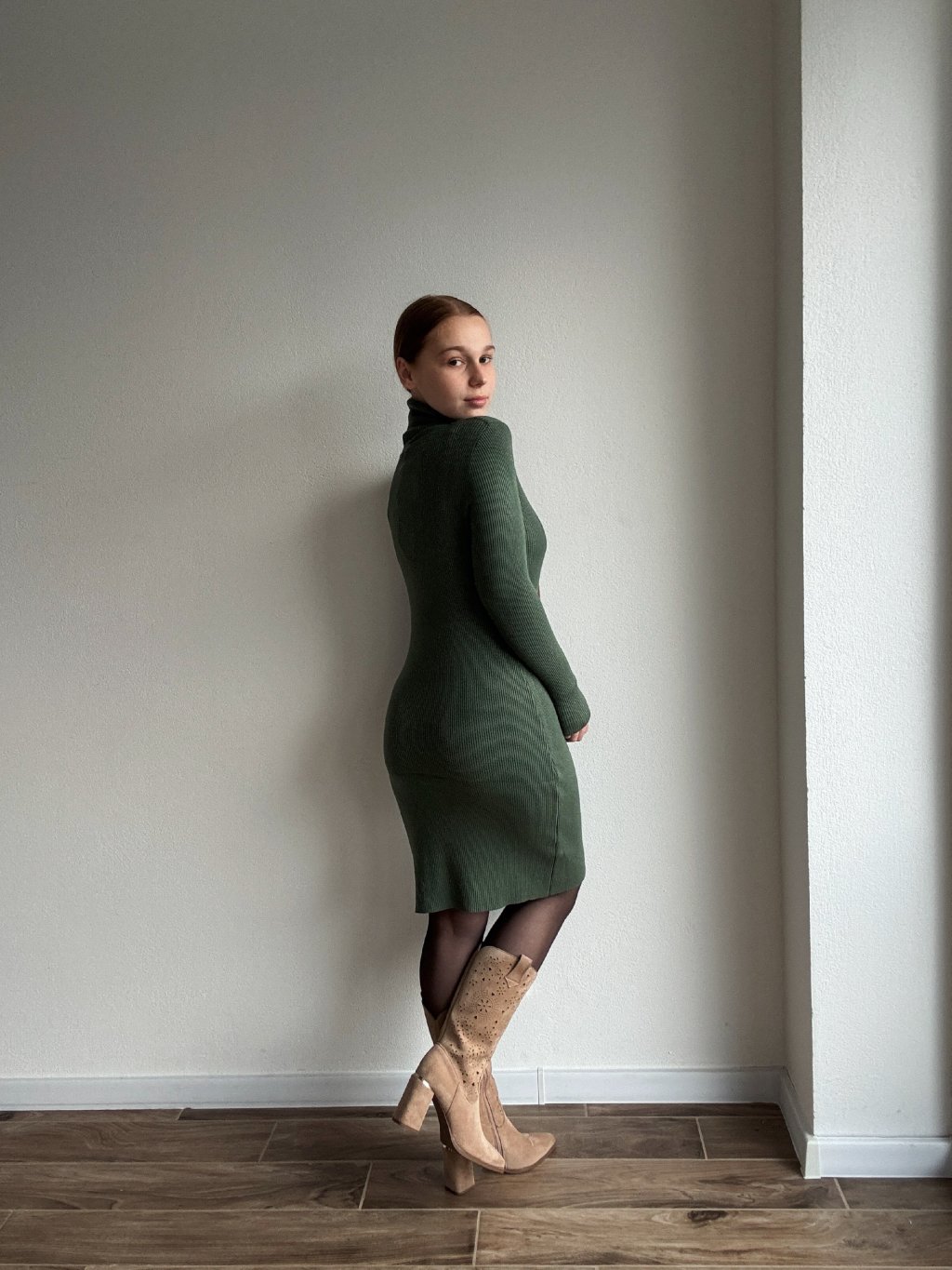 Úpletové rolakové šaty - GWEN - KHAKI