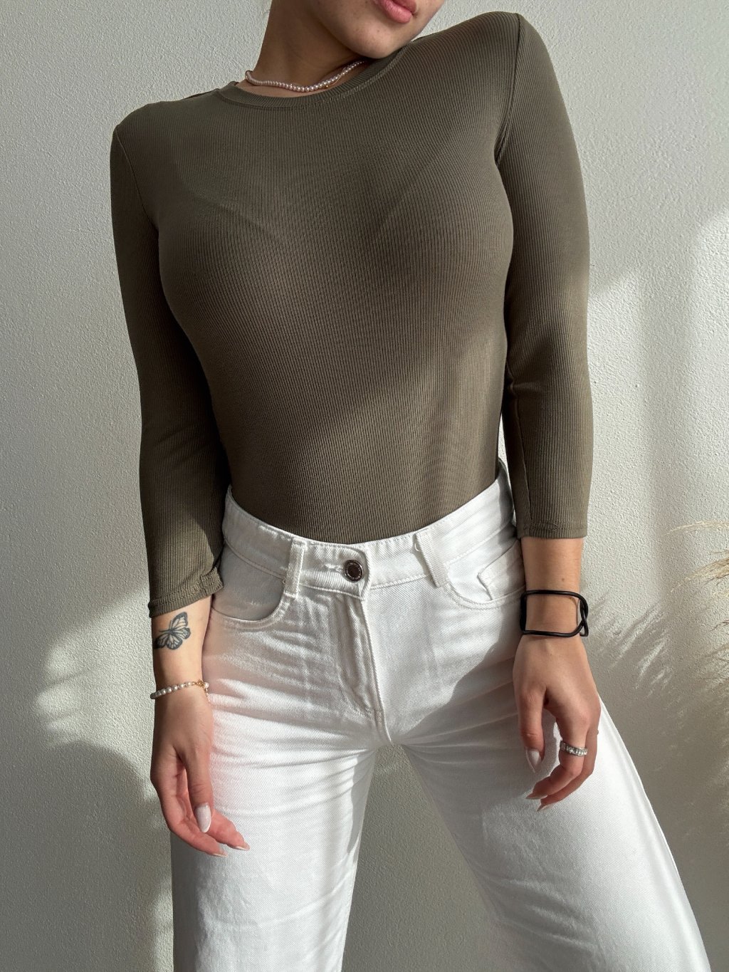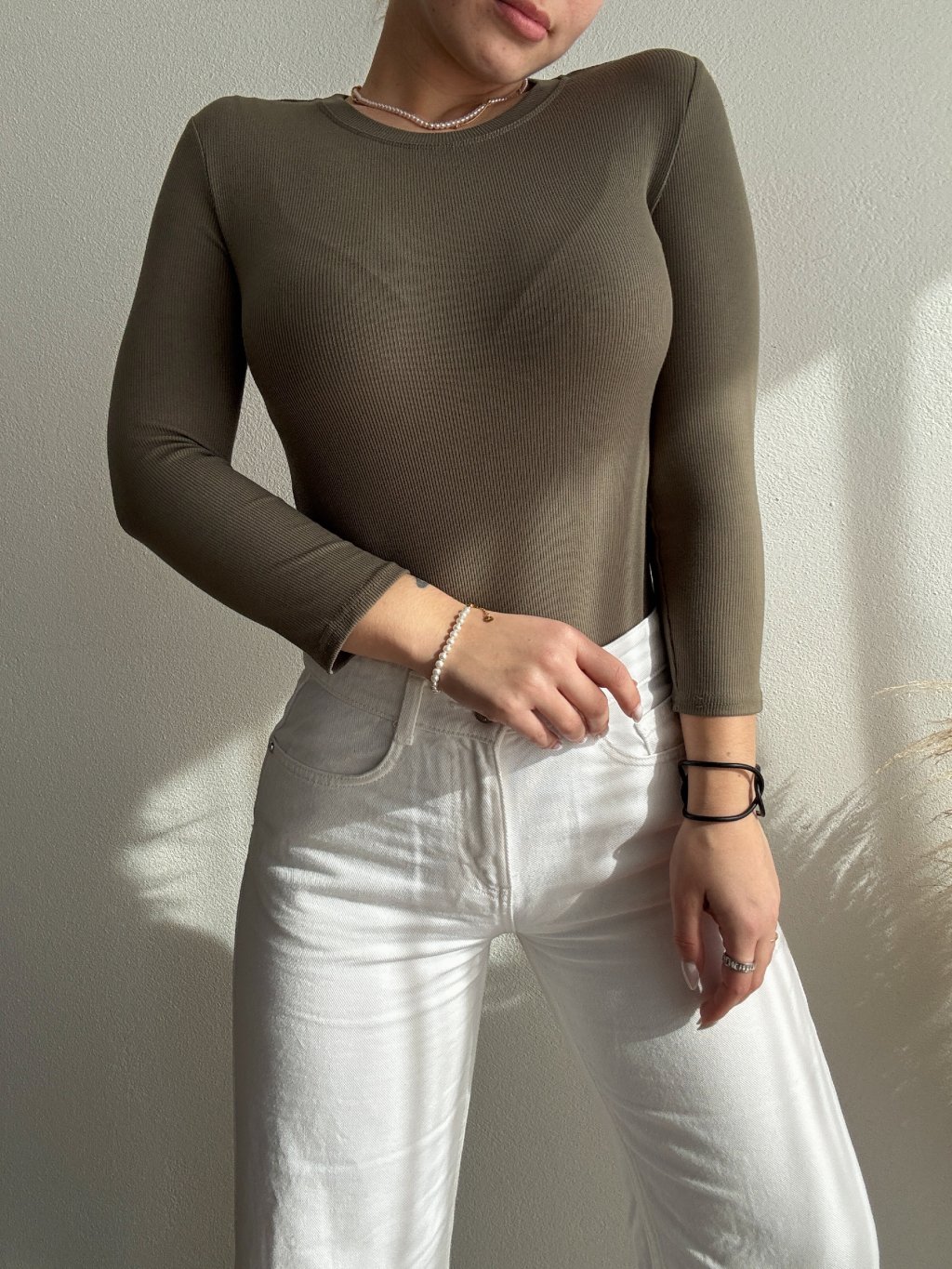 VRUBKOVANÉ BASIC TRIČKO NADIN - OLIVOVÁ